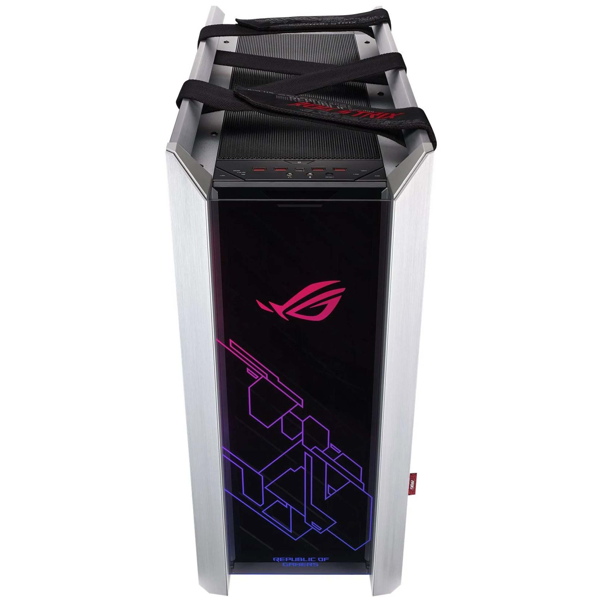 ROG Strix Helios ? un case da gioco mid-tower premium con tre pannelli in vetro temperato, raffinato telaio in alluminio e illuminazione RGB integrata sul pannello anteriore. La gestione dei cavi integrata, include una cover multifunzione con supporti GPU, cge mantiene l’interno perfettamente ordinato. Progettato per ottenere espandibilit? e prestazioni, supporta schede madri EATX e configurazioni con raffreddamento a liquido di alto livello, che lo rendendono la scelta perfetta come classica vetrina ROG.