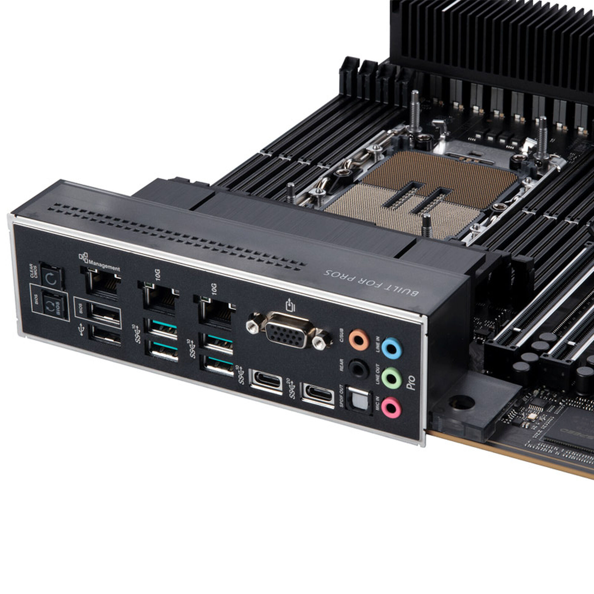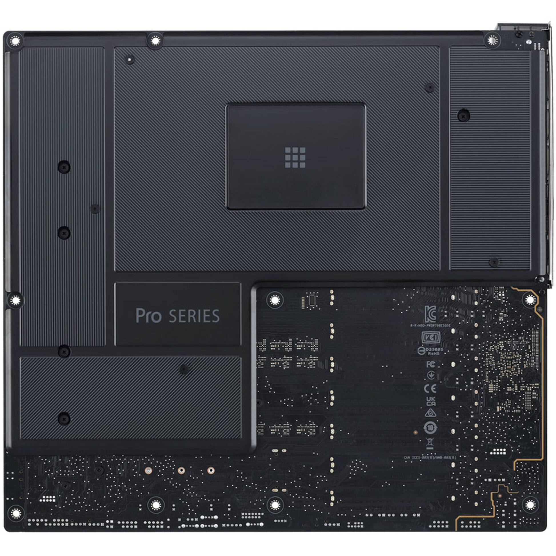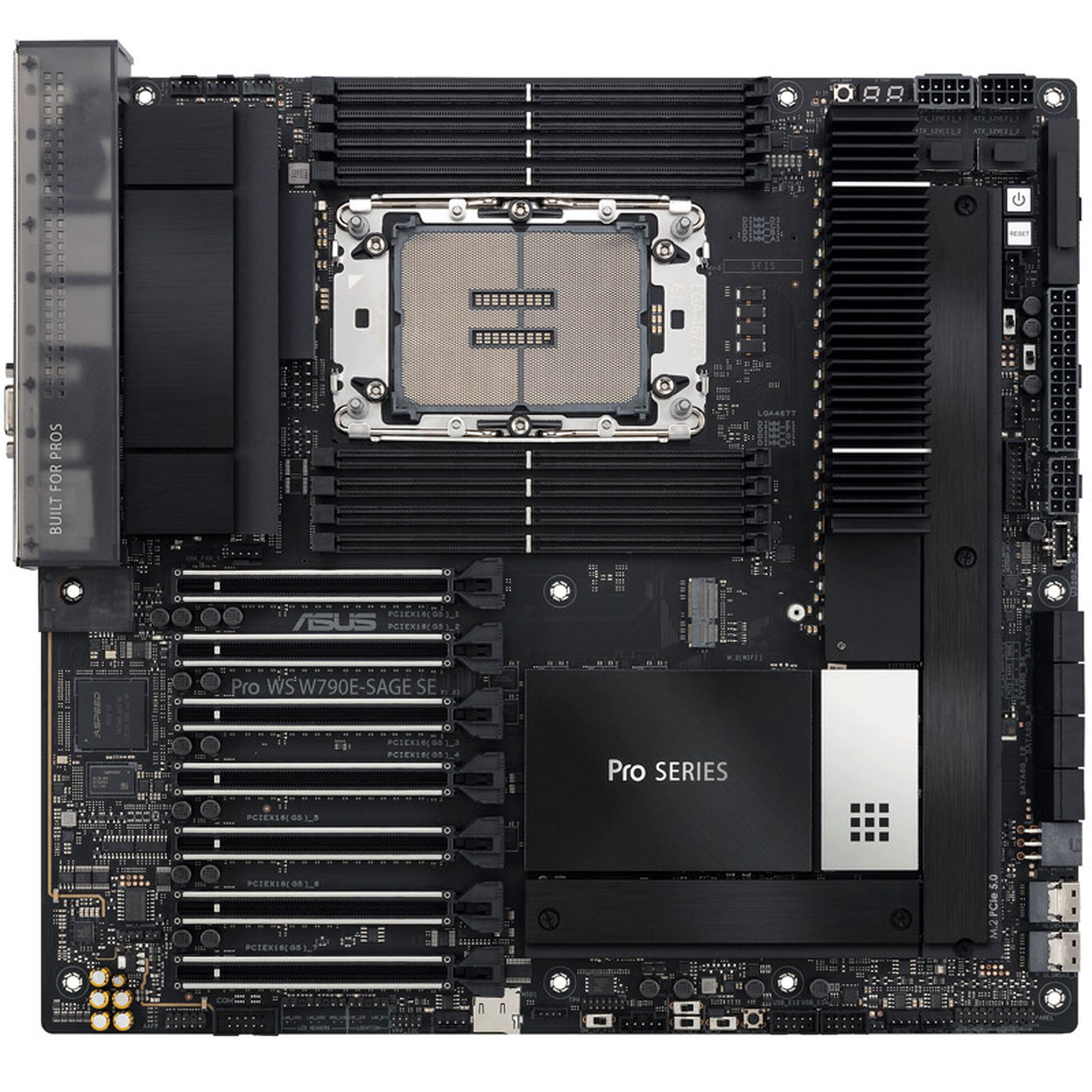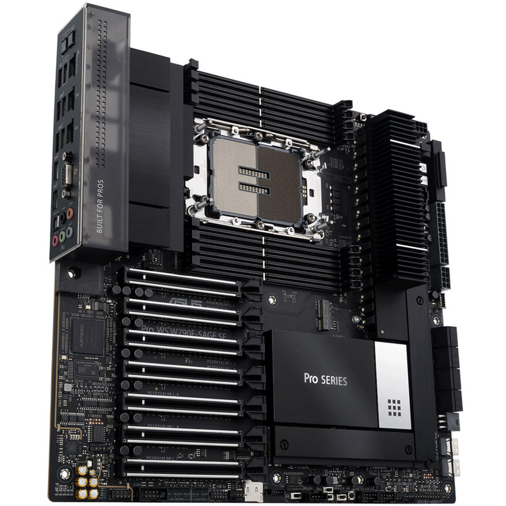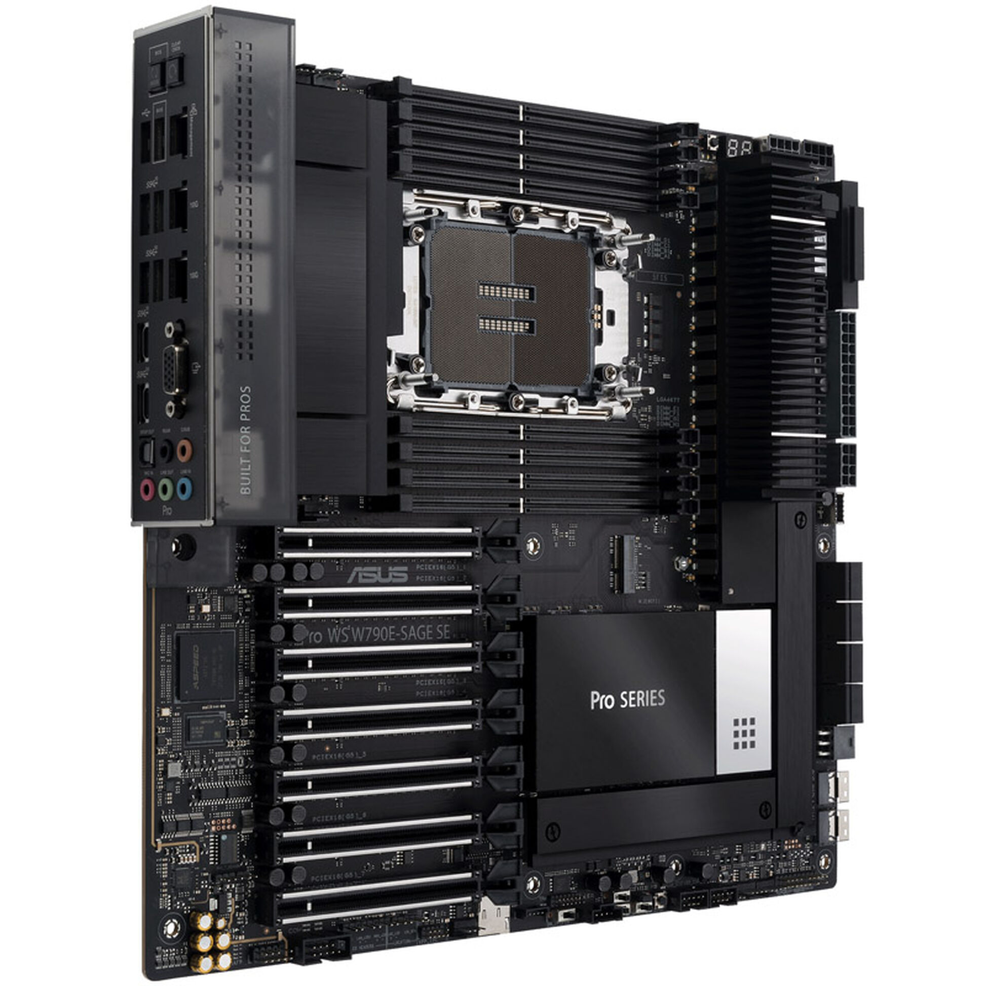 Con estrusioni in alluminio nero metallizzato, rete nera in acciaio inossidabile con dettagli evidenziati e una copertura I/O grigio fumo trasparente, la serie Pro WS W790 presenta un look professionale e di basso profilo per i creatori di contenuti.
