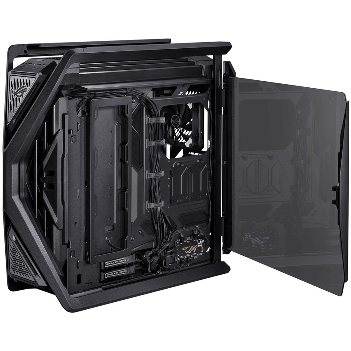 Come ulteriore chicca, ASUS ricava dalla cover dedicata all’alimentatore un piccolo alloggiamento a scomparsa pensato per contenere viti, accessori ed un piccolo cacciavite, cos? da avere sempre tutto a portata di mano. Il case comprende quattro ventole da 140mm, di cui tre installate parte frontale ed una in espulsione sul retro oltre ad un HUB per gestire fino a sei ventole PWM e otto componenti ARGB.