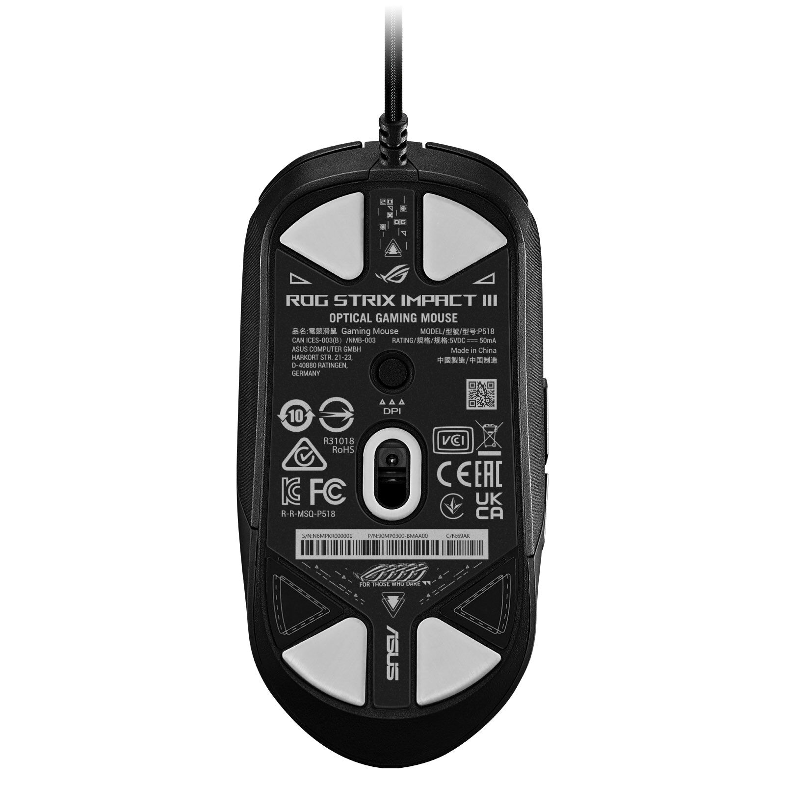 Dotato di un sensore ottico che offre una gamma di 100-12.000 dpi, con una deviazione dell’1% leader della categoria e una frequenza di polling di 1000 Hz, ROG Strix Impact III garantisce una risposta rapida e un controllo preciso.