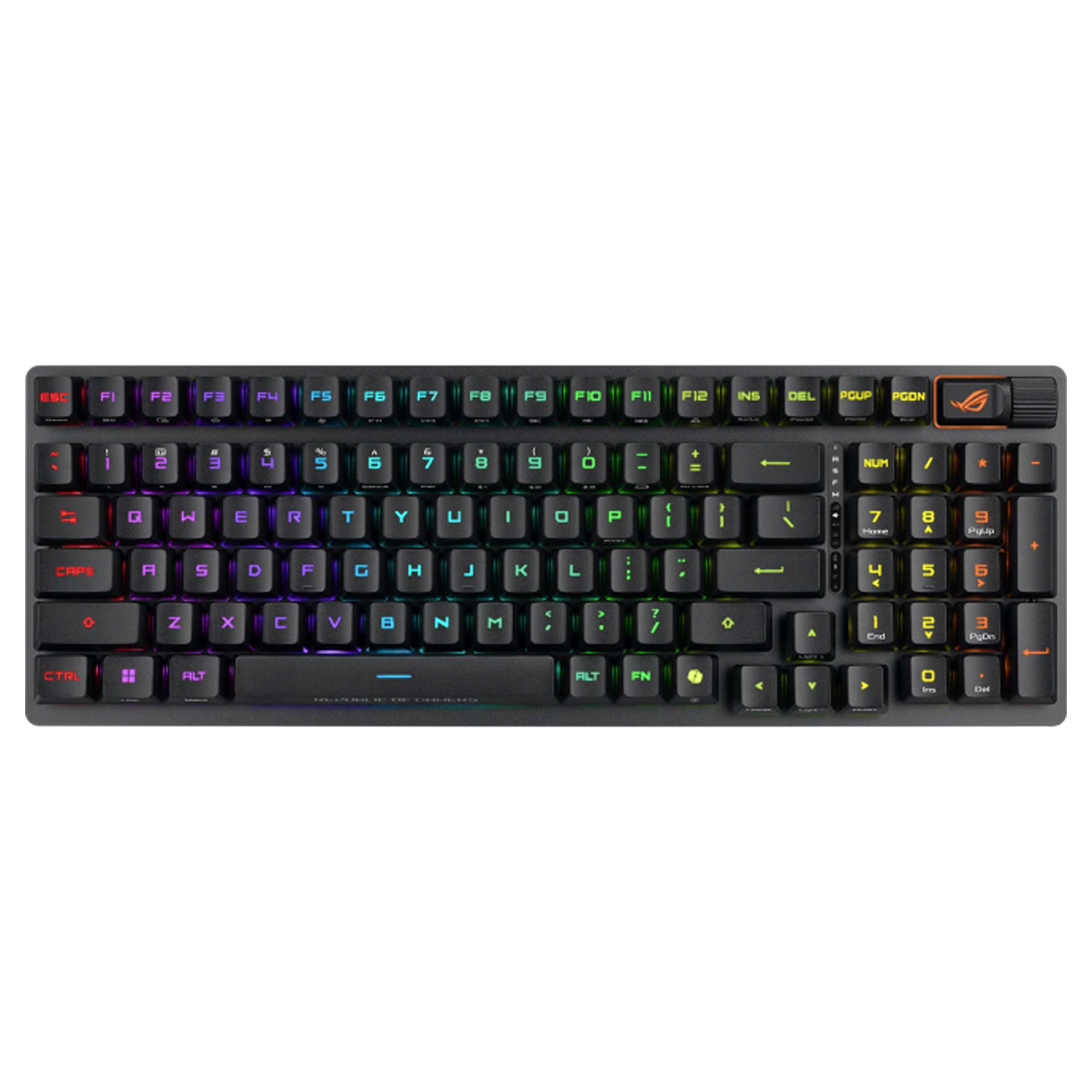 La ROG Strix Scope II 96 RX Wireless ? una tastiera gaming compatta che offre tutte le funzionalit? di una tastiera full-size in un layout efficiente al 96%, liberando spazio sulla scrivania.