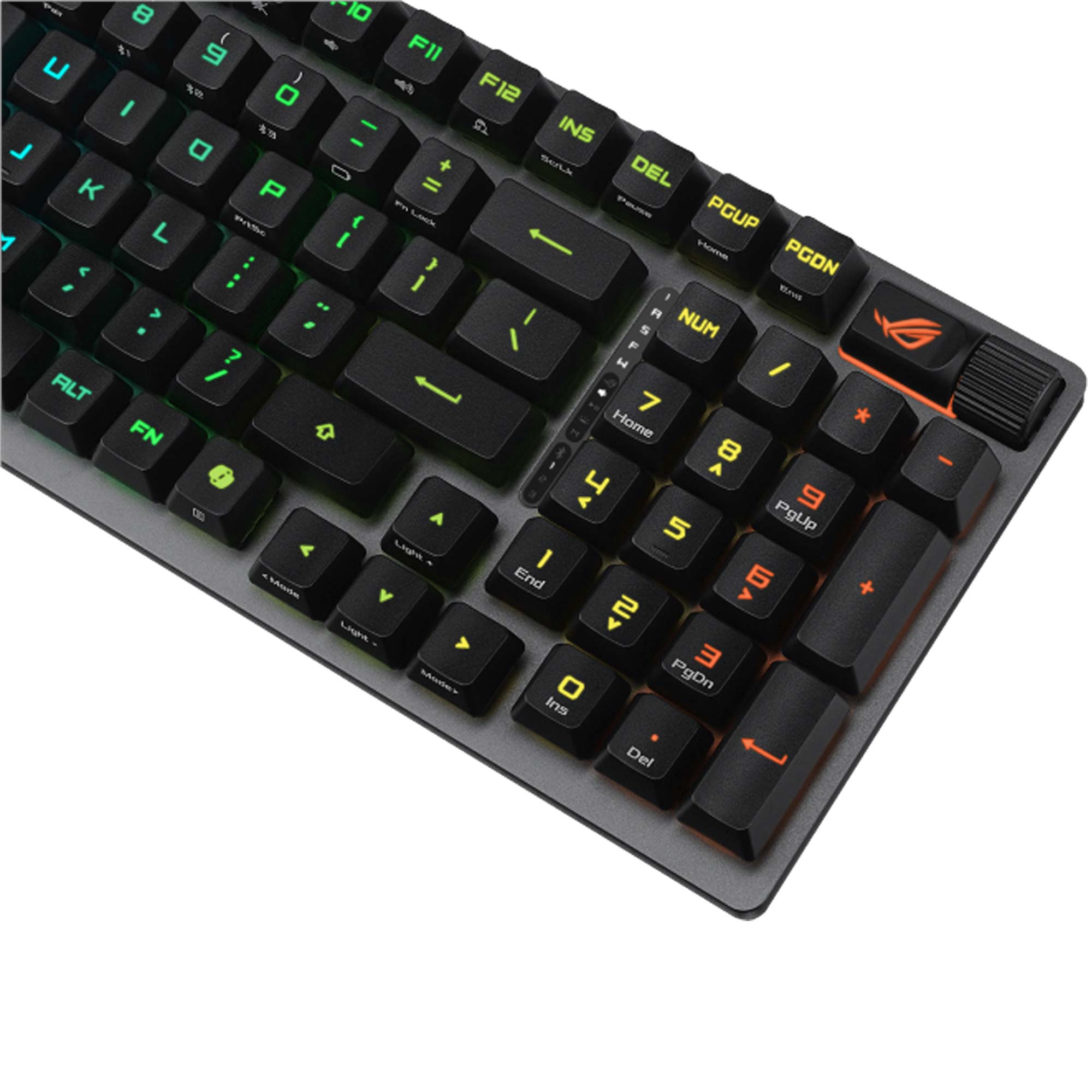 ? dotata di switch ottici meccanici ROG RX Red, connessione tri-mode (USB-C, Bluetooth 5.1 e RF 2.4 GHz con tecnologia ROG SpeedNova) e supporta il ROG Omni Receiver per connessioni wireless simultanee con dispositivi compatibili. La struttura integra una schiuma smorzante in silicone per ridurre i rumori di digitazione e keycaps UV-coated con elementi a tema ROG per un’estetica unica.
