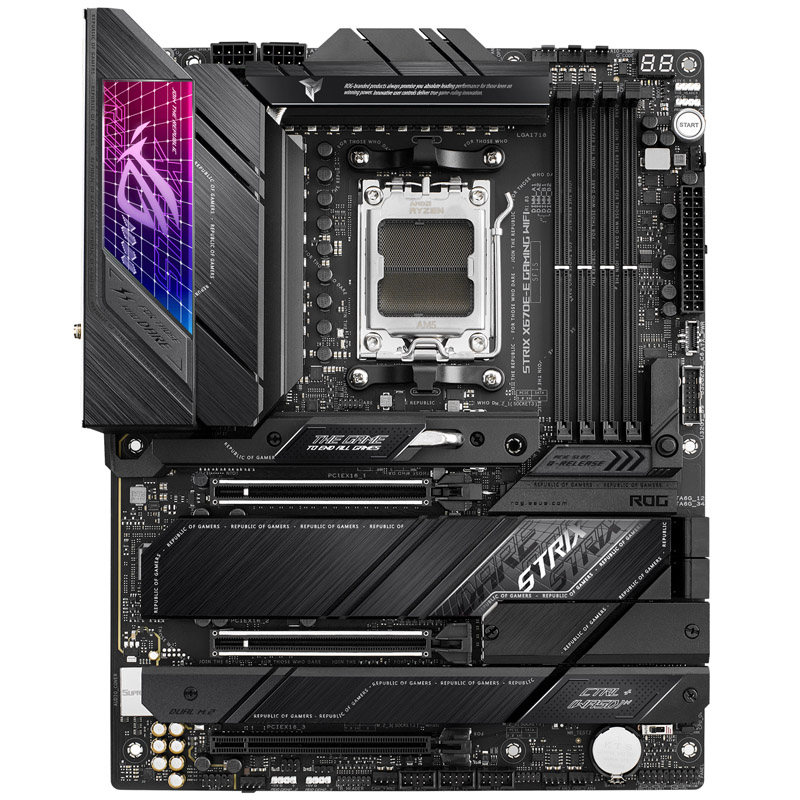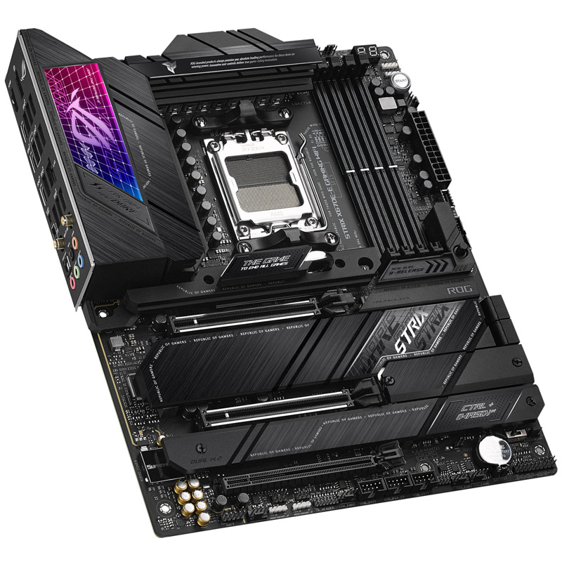 L’ASUS ROG Strix X670E-E Gaming è dotato del chipset di fascia alta X670 per i processori Ryzen di AMD della serie 7000 e offre numerose funzionalità per gli overclocker. Poiché i processori Ryzen 7000 richiedono un nuovo socket a causa del supporto di PCIe 5.0 e dell’alimentazione estesa, AM5 (LGA 1718) è il nuovo socket di casa AMD supportato dalle mainboard delle serie 600.