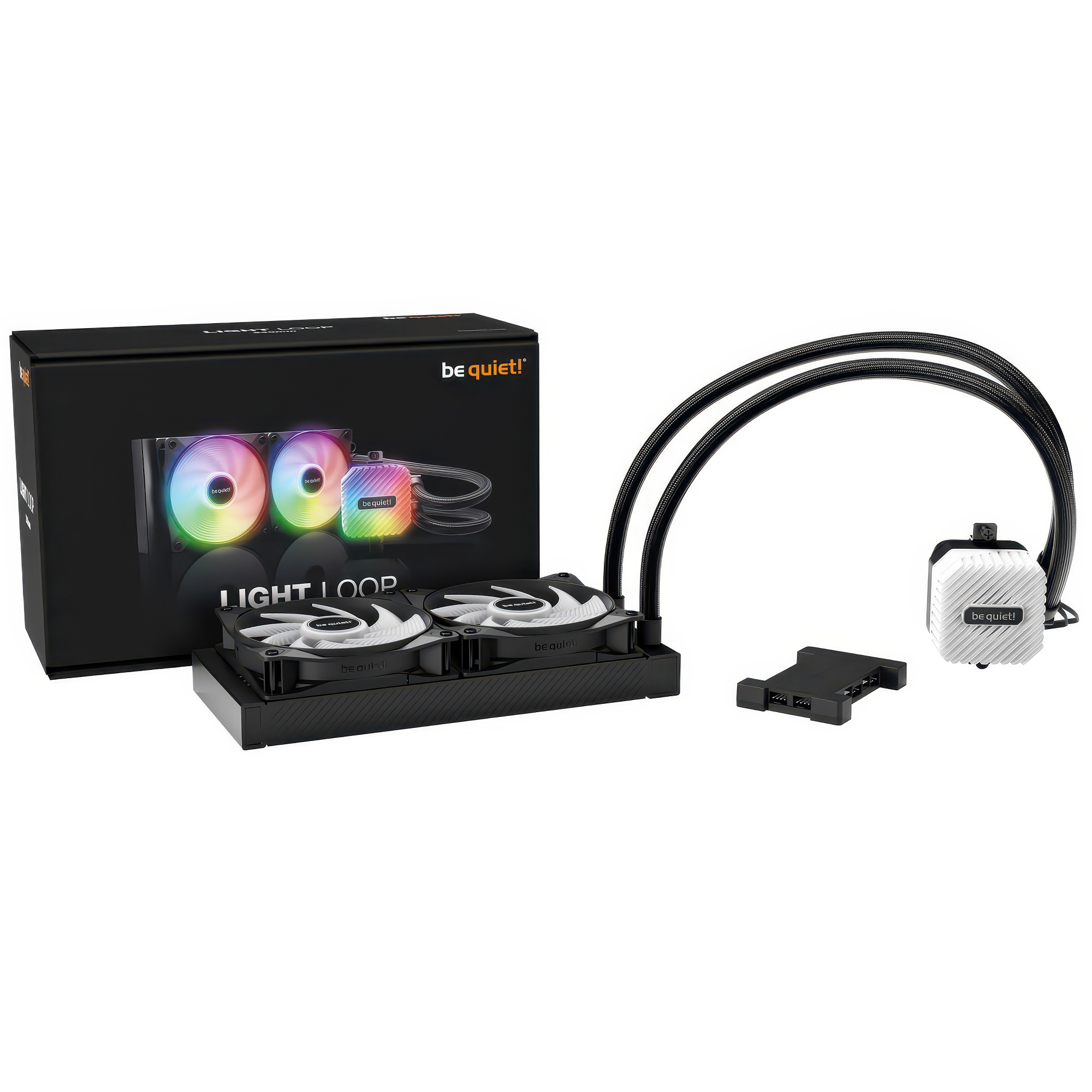 Il be quiet! Light Loop 240mm ? un sistema di raffreddamento a liquido All-in-One progettato per offrire prestazioni elevate e un’estetica accattivante. Dotato di due ventole Light Wings LX da 120 mm PWM ad alta velocit? con illuminazione ARGB, garantisce un’elevata pressione statica e un funzionamento silenzioso. La pompa con IC progressivo riduce al minimo le vibrazioni, mentre l’hub ARGB-PWM incluso consente la sincronizzazione di fino a 6 componenti ARGB e ventole PWM. Il tubo flessibile da 400 mm e la porta di ricarica facilmente accessibile assicurano una lunga durata e facilit? di manutenzione.