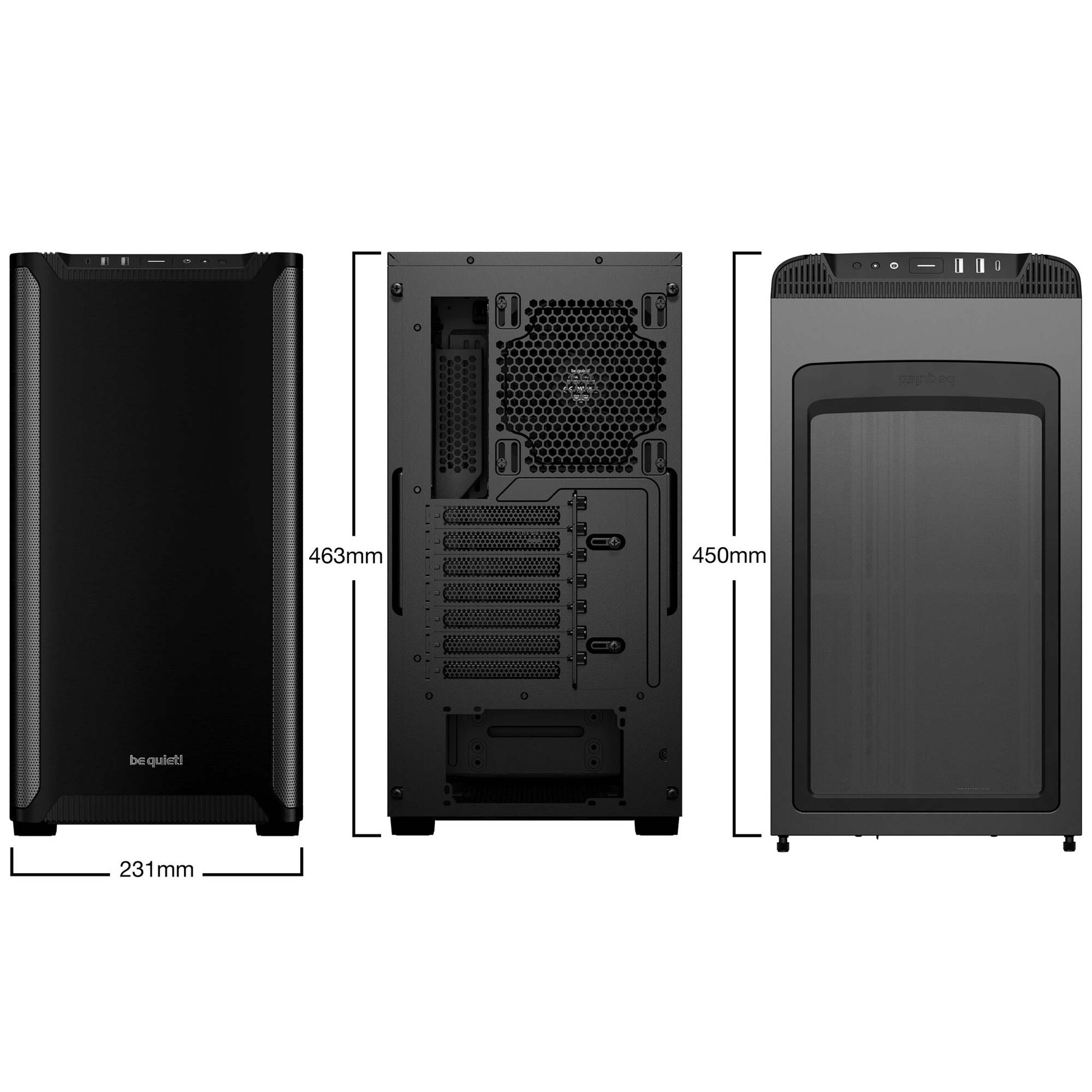 Il case integra 2 ventole Pure Wings 3 da 140 mm PWM ? una frontale e una posteriore ? ottimizzate per il flusso d?aria con pale silenziose e una pressione statica bilanciata. Supporta radiatori fino a 360 mm frontalmente e fino a 240 mm nella parte superiore. Nonostante le dimensioni compatte, offre spazio per GPU ad alte prestazioni, CPU cooler di grandi dimensioni e PSU standard.