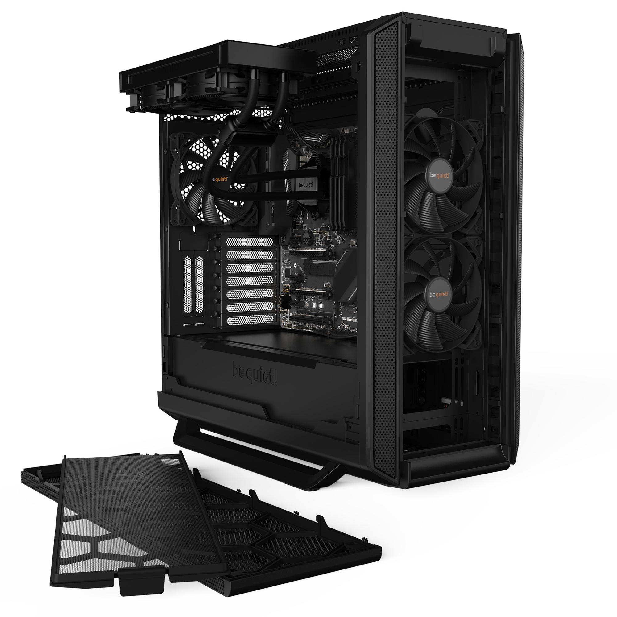 ? dotato di 3 ventole Pure Wings 2 da 140 mm preinstallate, ottimizzate per la silenziosit? e l?efficienza del flusso d?aria. Il case supporta radiatori fino a 420 mm e integra un vassoio scheda madre invertibile e rimovibile, ideale anche per uso come test bench. I pannelli laterali e frontali includono tappetini fonoassorbenti da 10 mm per un?eccellente insonorizzazione.