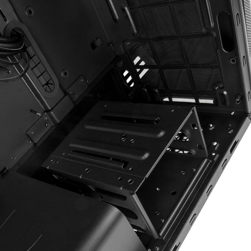 All’interno trovano posto due cestelli removibili per periferiche da 3,5″”/2,5″” ed almeno un paio di predisposizioni per SSD posizionate in alcuni punti strategici da utilizzare nel caso in cui i due cestelli vengano entrambi rimossi.