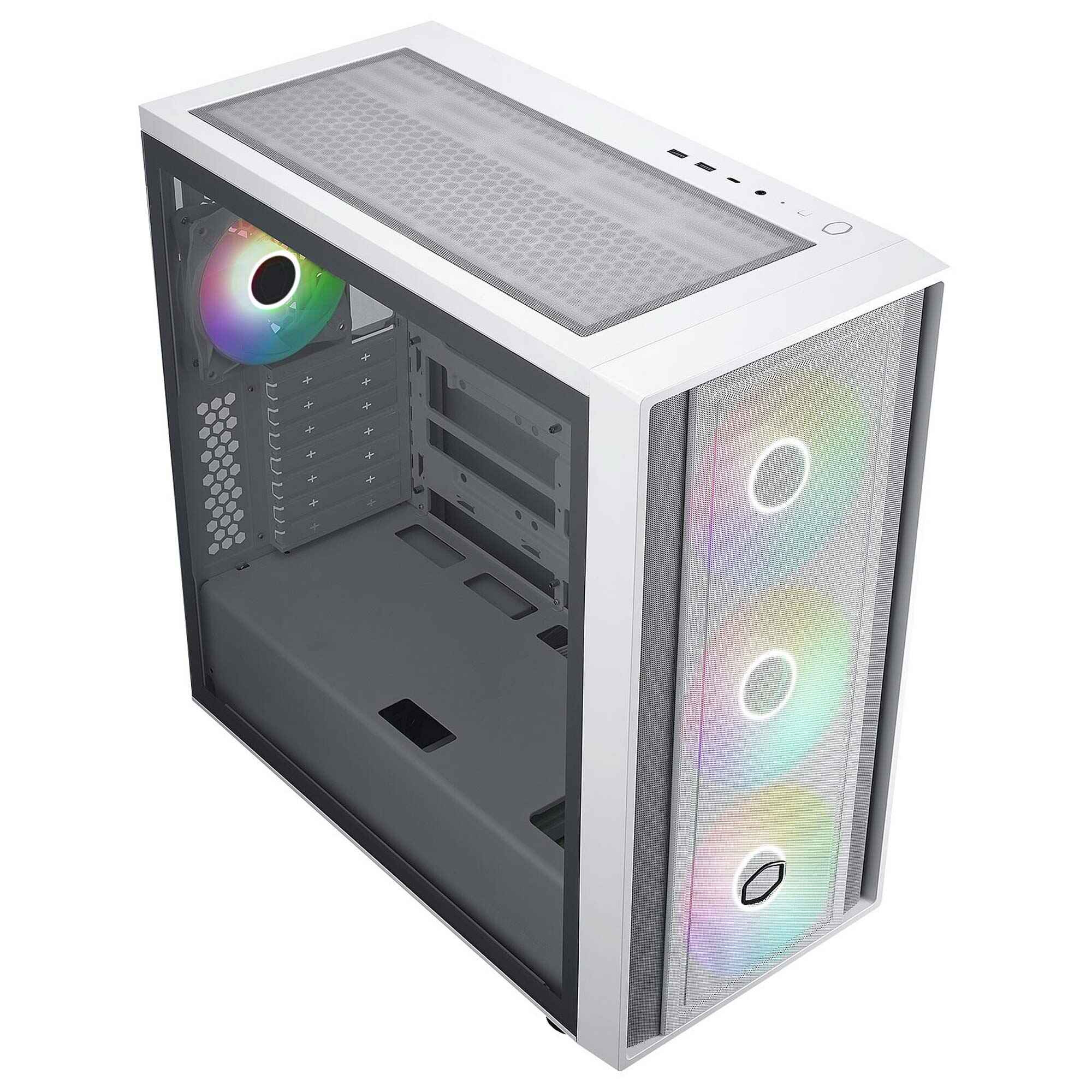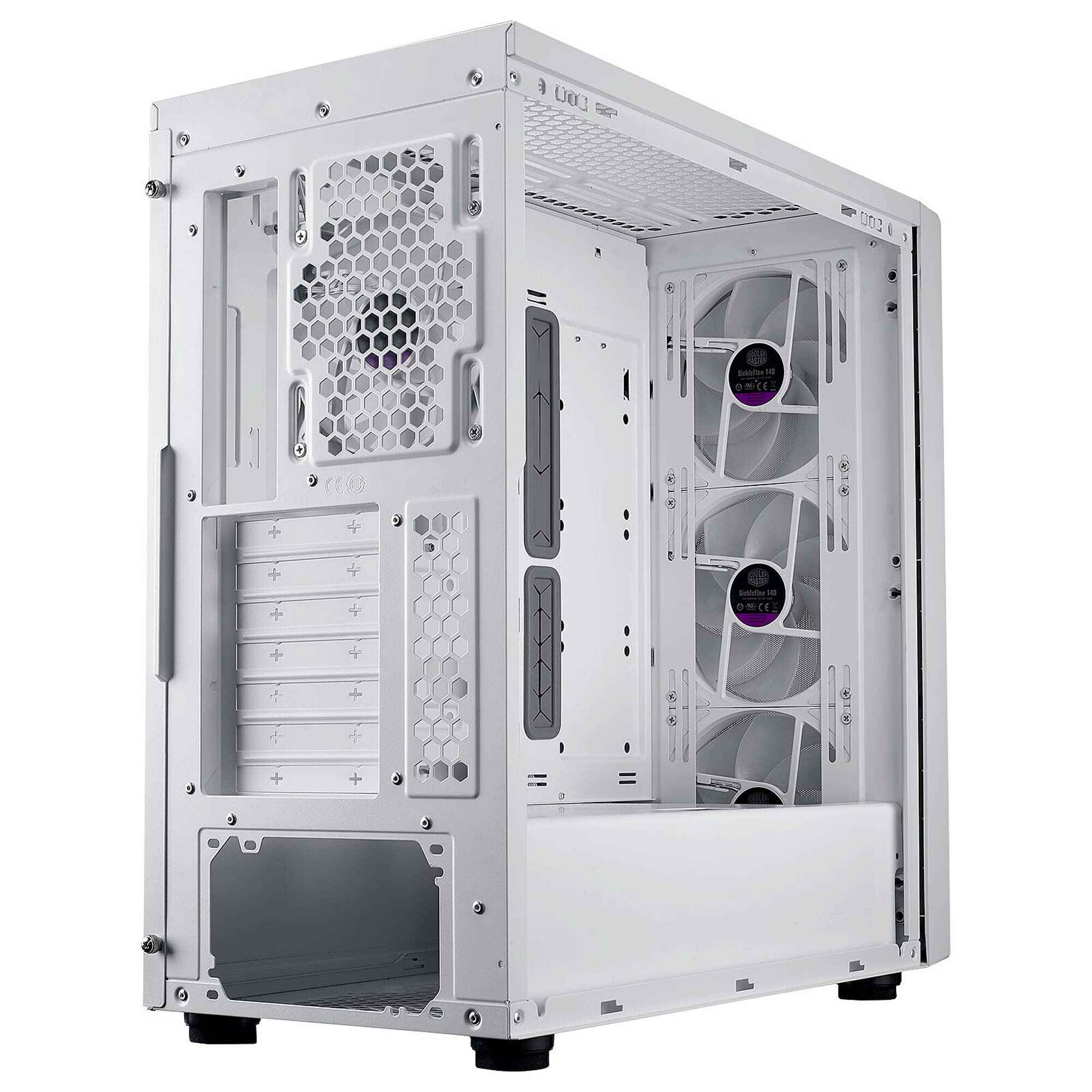 Il Masterbox 600 ? progettato per chi ? alla ricerca di un case funzionale, facile da usare e che bilancia prestazioni e convenienza. Viene fornito con 3 ventole SickeFlow da 140 mm poste nella parte anteriore ed un modello CF120 posteriore. In totale ? possibile installare un massimo di 7 ventole da 120 mm, supporto per radiatori da 360 nella parte superiore e da 420 nella parte frontale per garantire un air-flow al top.