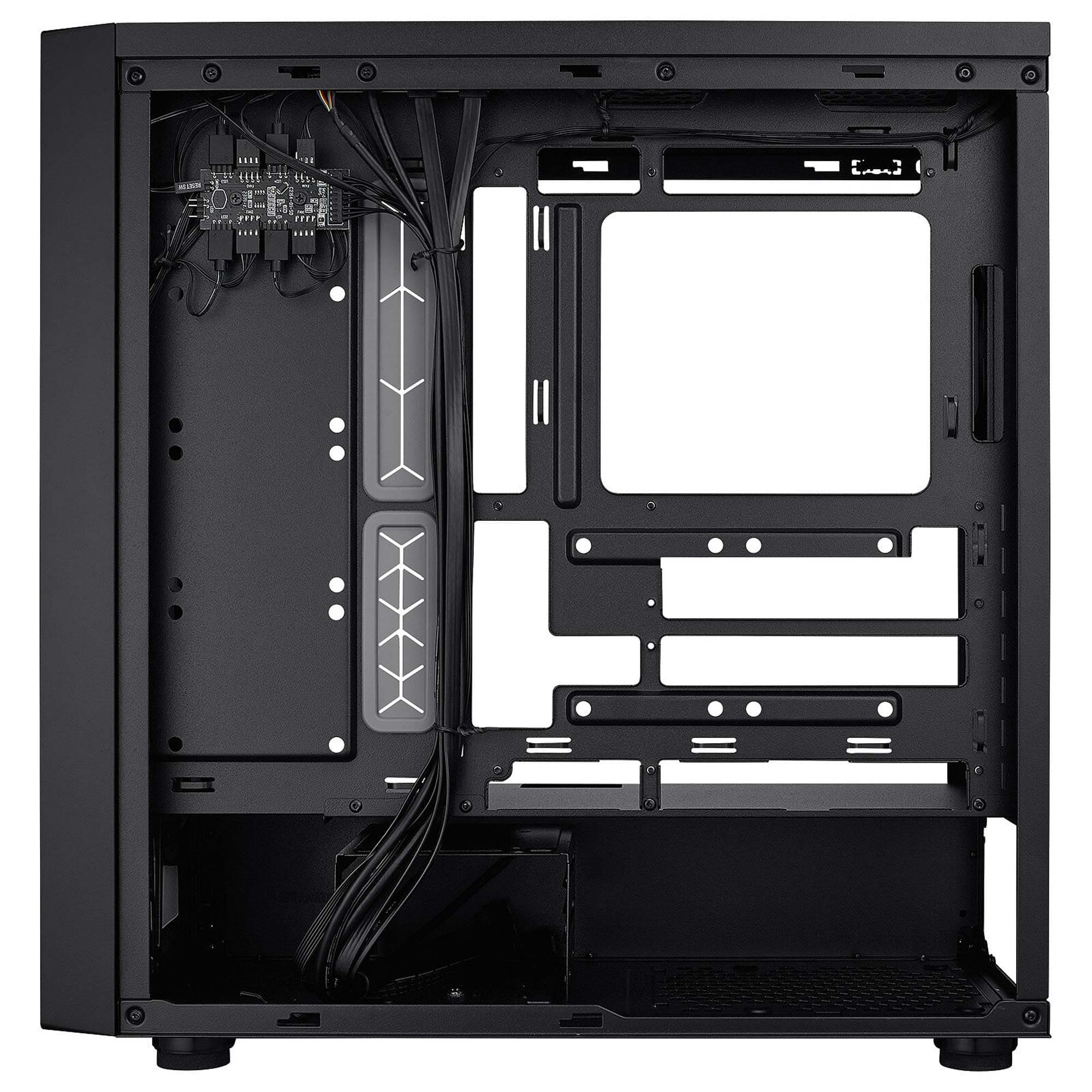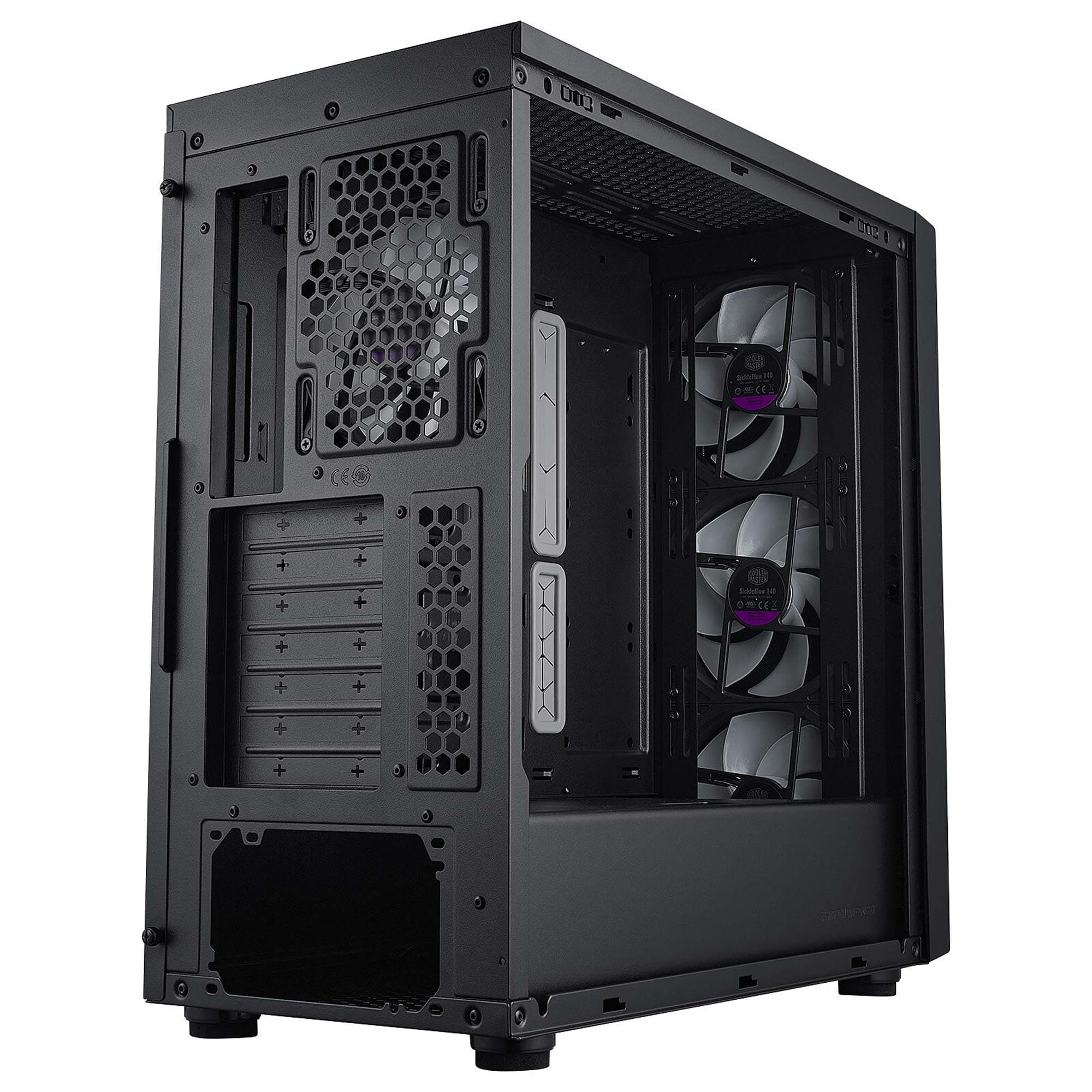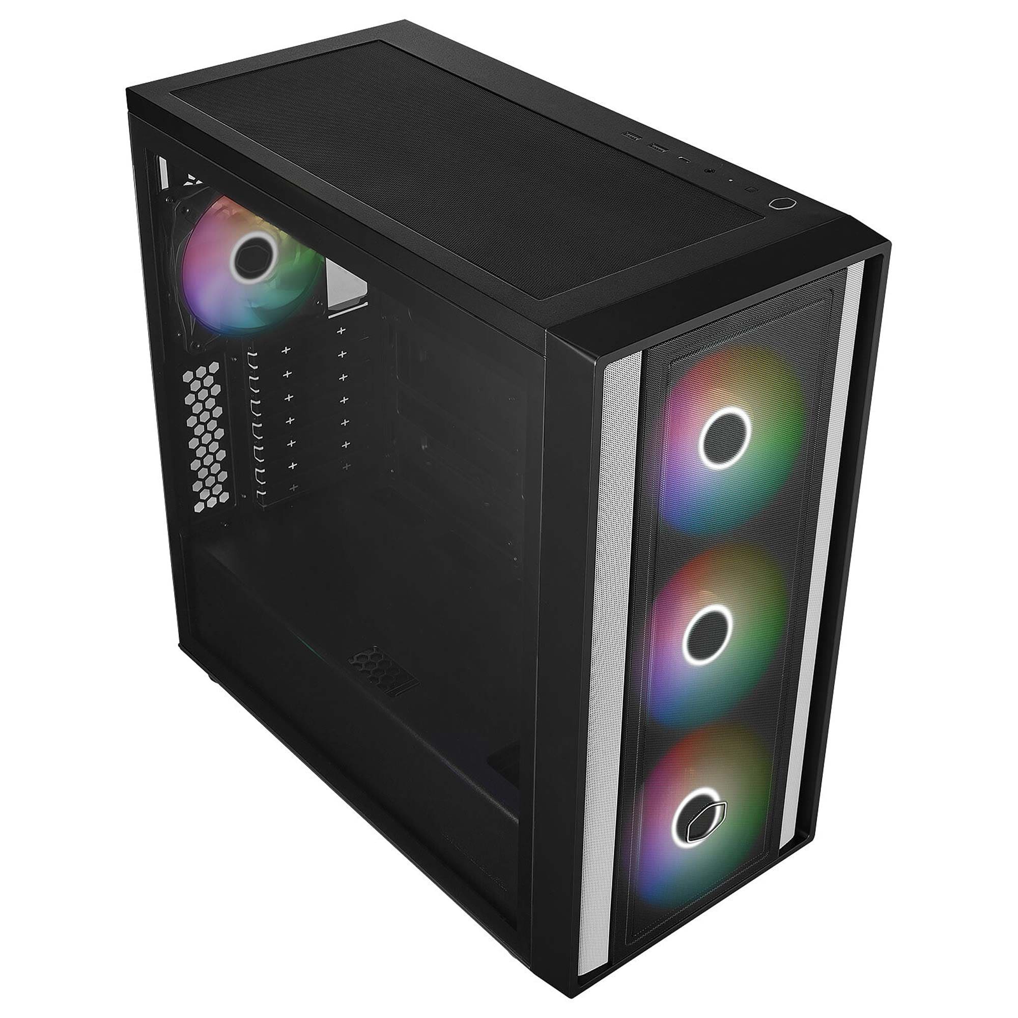 Il Masterbox 600 ? progettato per chi ? alla ricerca di un case funzionale, facile da usare e che bilancia prestazioni e convenienza. Viene fornito con 3 ventole SickeFlow da 140 mm poste nella parte anteriore ed un modello CF120 posteriore. In totale ? possibile installare un massimo di 7 ventole da 120 mm, supporto per radiatori da 360 nella parte superiore e da 420 nella parte frontale per garantire un air-flow al top.