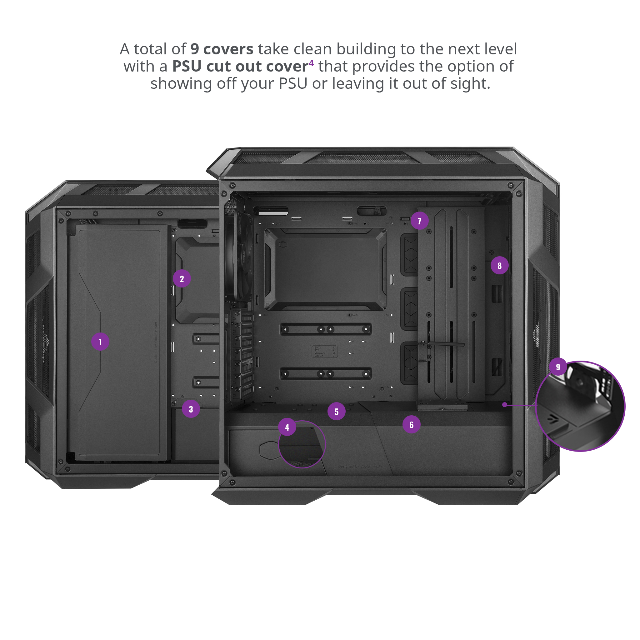Come in passato, troviamo diverse soluzioni per un raffinatissimo cable management, tra le quali una cover per la zona alimentatore e due per il retro del vano mainboard, adibite alla CPU e ai cavi.