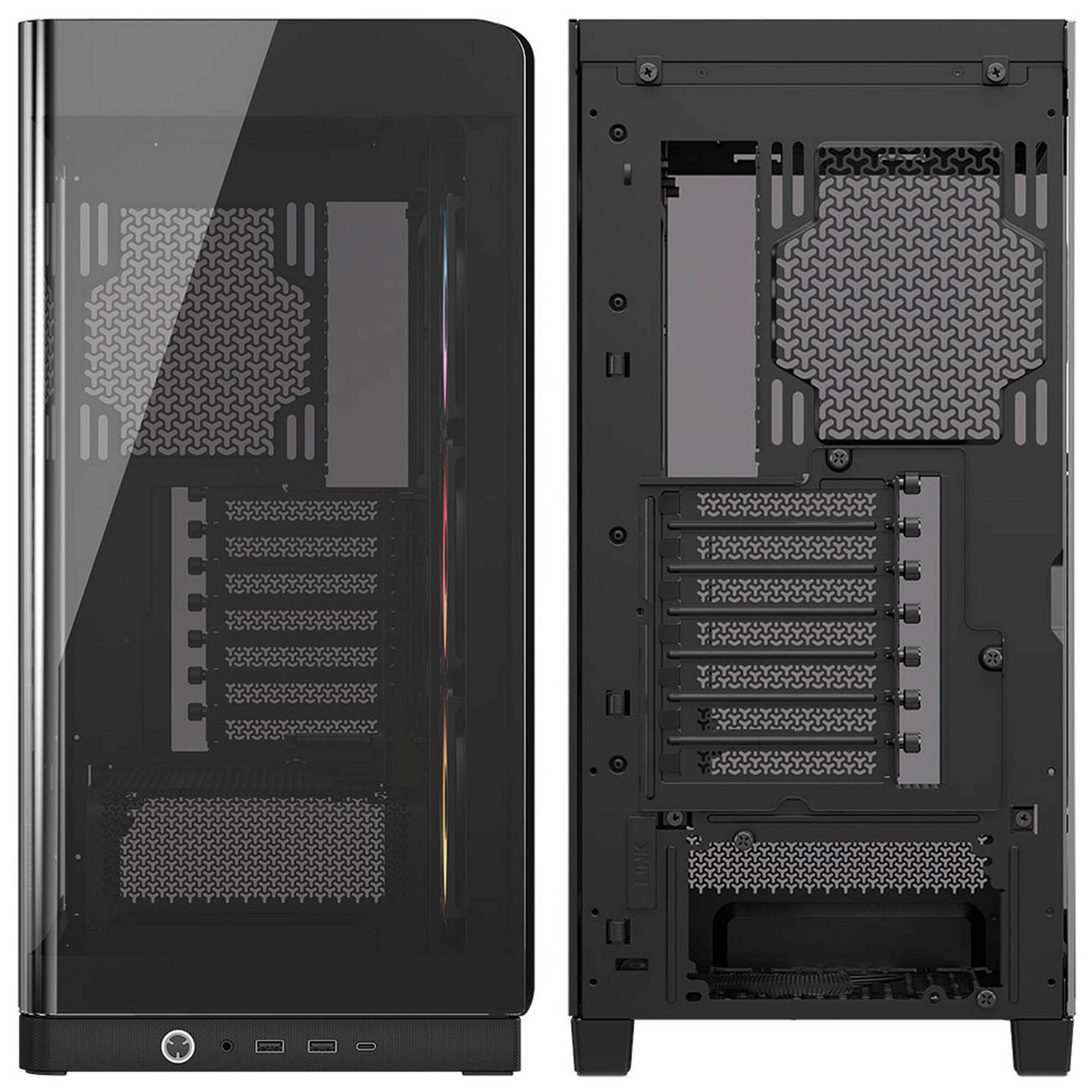 - Tipo: Mid-tower case, panel wraparound vetro curvo