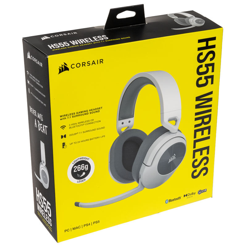 Le cuffie gaming CORSAIR HS55 WIRELESS abbinano l’audio wireless a bassa latenza a 2,4 GHz o le connessioni Bluetooth con una costruzione leggera, per un comfort wireless essenziale per tutto il giorno.