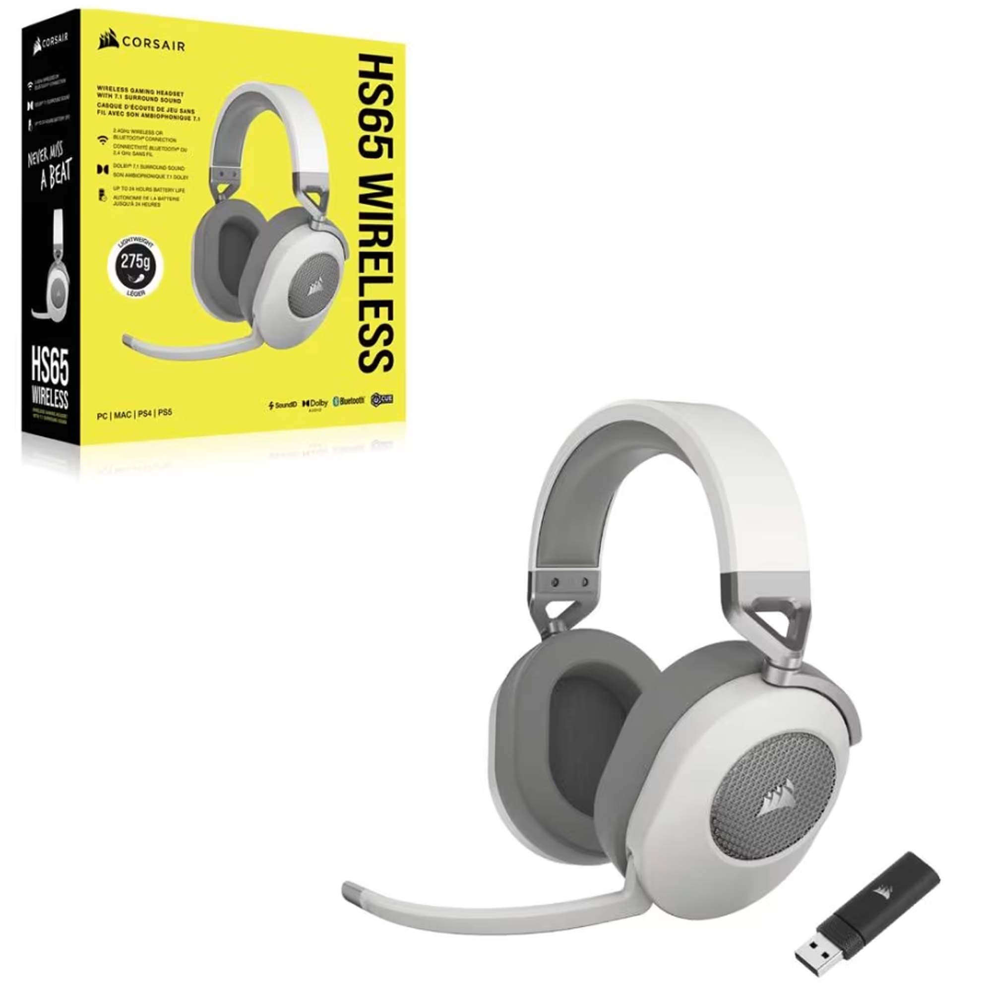 Le cuffie gaming CORSAIR HS65 WIRELESS abbinano l’audio wireless a bassa latenza a 2,4 GHz o le connessioni Bluetooth con una costruzione leggera, per un comfort wireless essenziale per tutto il giorno.