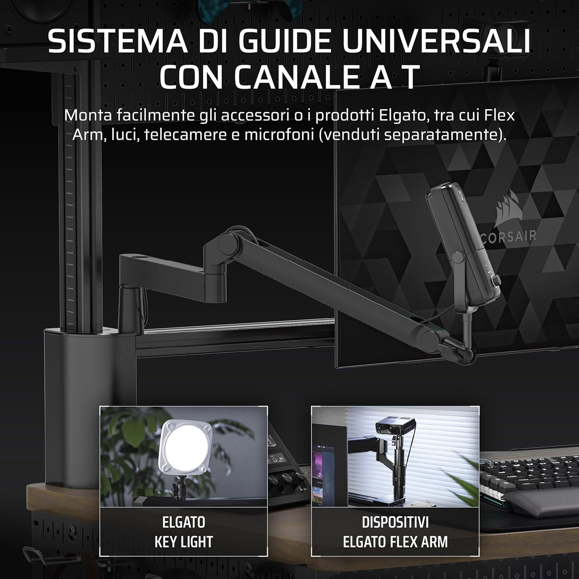 Dotata di un supporto per monitor incluso e di alimentazione USB integrata, la scrivania Platform:4 soddisfa tutte le tue esigenze fin da subito. Mantieni in ordine la tua postazione grazie al sistema di guide modulari con barra a T e al rivoluzionario sistema di instradamento, per organizzare al meglio i tuoi cavi. La scrivania inoltre ? espandibile con un pannello forato superiore (venduto separatamente) per migliorare ulteriormente l?organizzazione, ed ? compatibile con una serie di accessori per lo streaming, come Elgato Multi-Mount e Key Light.
