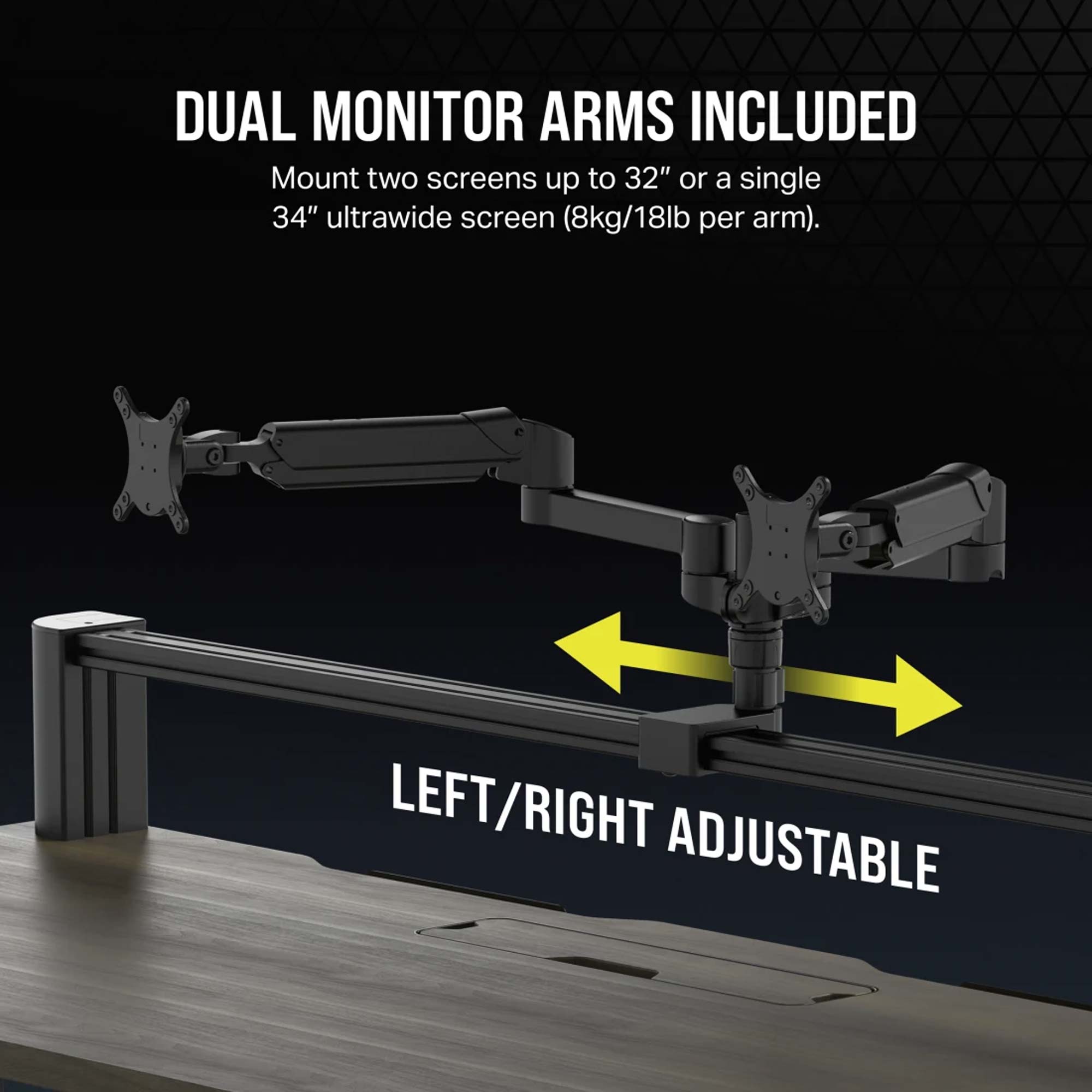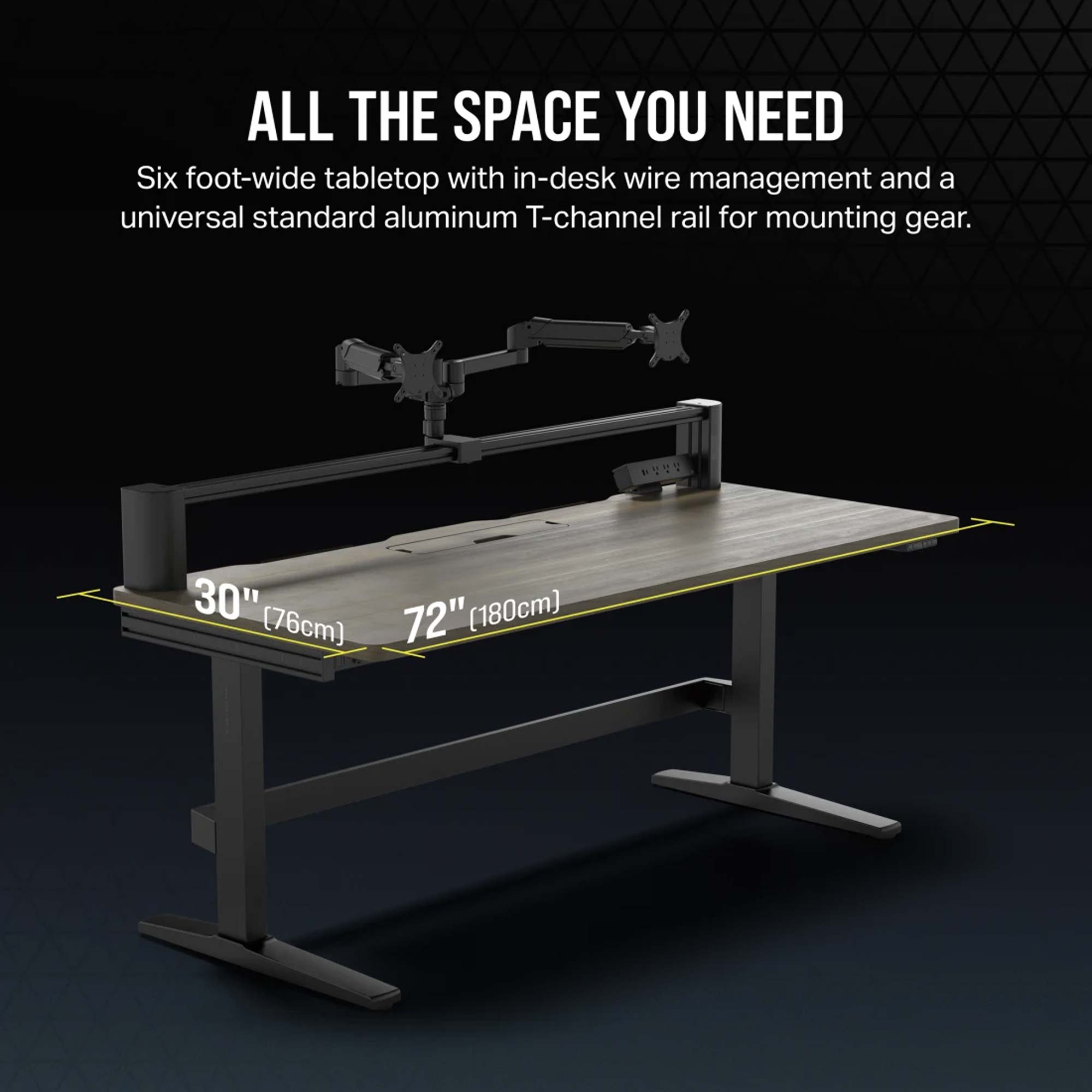 Rivoluziona la tua postazione di lavoro con la versatile scrivania CORSAIR Platform:6 Elevate. Questa scrivania per computer regolabile in altezza combina alla perfezione stile, modularit? e funzionalit?. Dotata di un generoso piano in rubberwood (noce scuro) con larghezza di 180 cm, doppi bracci porta-monitor, alimentazione USB integrata e prese multiple montate sulla scrivania incluse in dotazione, non avrai problemi di spazio a posizionare tutti i tuoi dispositivi di lavoro.