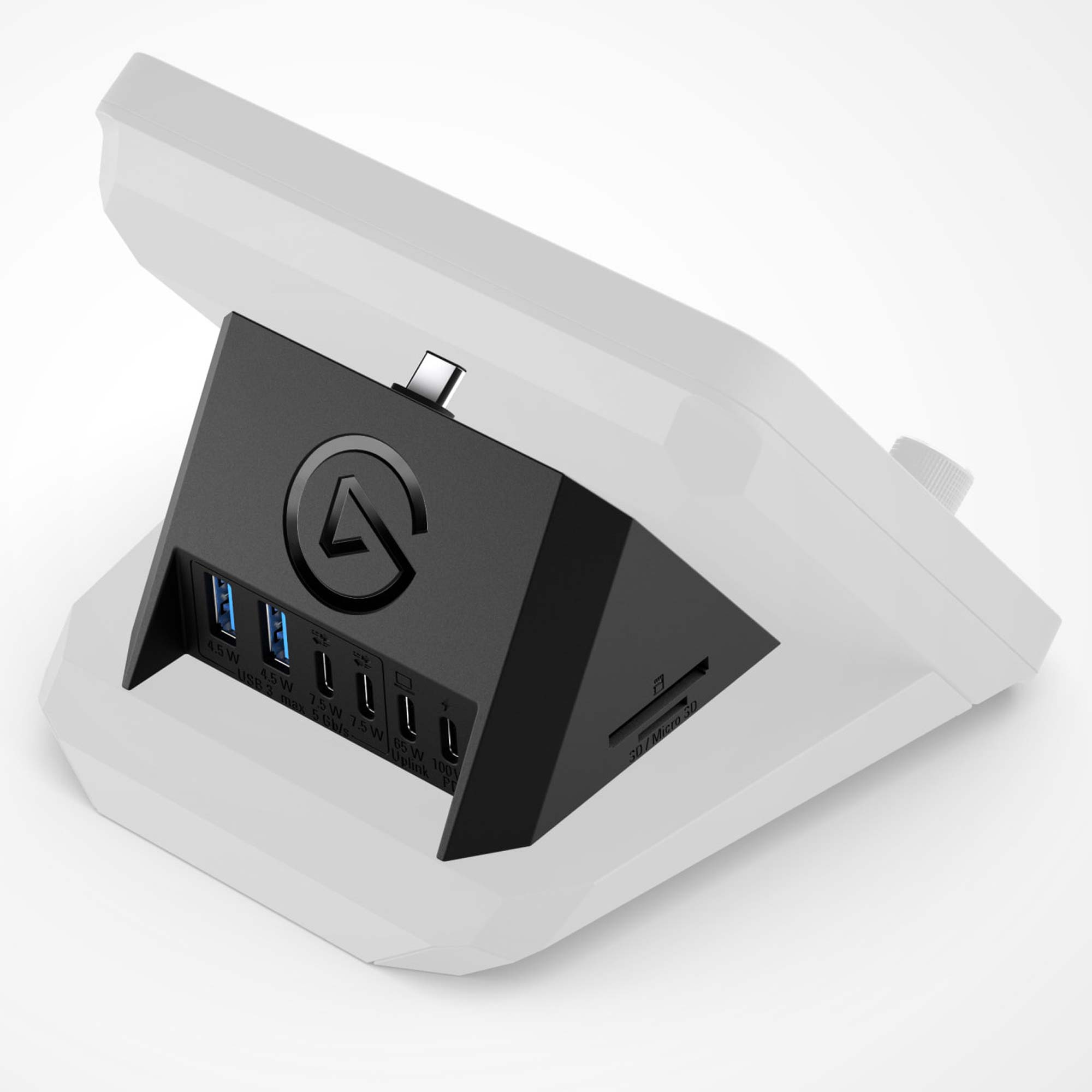 Elgato USB Hub per Stream Deck+ espande la connettivit? con 2 porte USB-A, 2 USB-C, lettore SD/microSD, integrandosi perfettamente per una gestione ottimale dei dispositivi.