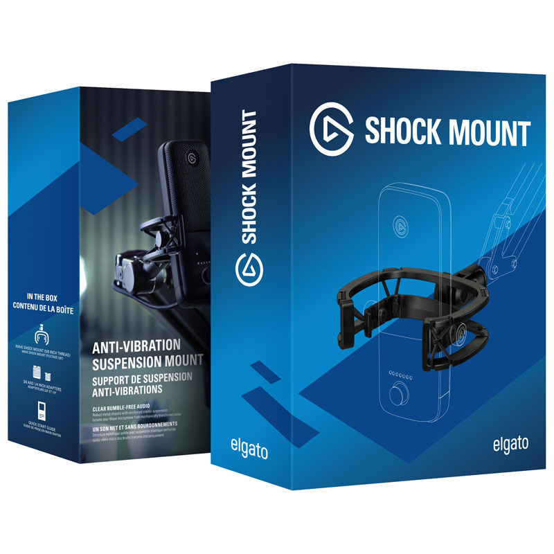 L’Elgato Wave Shock Mount ? supporto antivibrazione per i microfoni Wave: 1 e Wave: 3 ed ? stato sviluppato appositamente per questi microfoni. Il solido telaio in acciaio e le sospensioni in gomma smorzano efficacemente gli urti e le vibrazioni in modo che non possano influire sulla qualit? del suono. Grazie alla filettatura da 5/8 pollici, l’Elgato Wave Shock Mount ? compatibile con bracci e supporti standard per microfono. Sono inclusi anche adattatori per filettature da 3/8 e 1/4 di pollice.