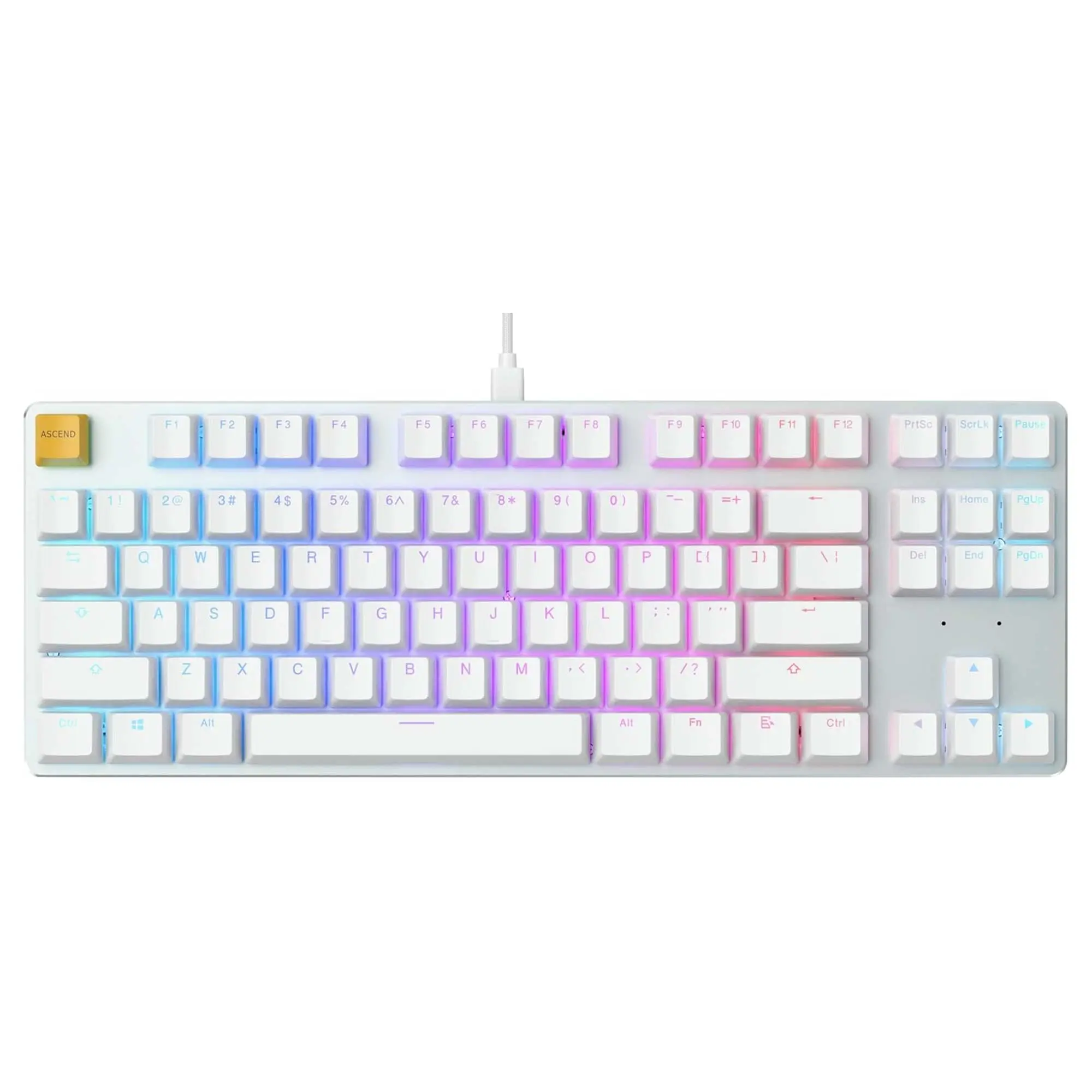 L’illuminazione RGB, inclusi 18 effetti, pu? essere attivata con una combinazione di tasti e configurata individualmente e salvata in un profilo. Facoltativamente, ? possibile utilizzare il software dedicato per la programmazione dell’illuminazione. Tuttavia, non sono richiesti driver speciali, il GMMK TKL funziona in gran parte con Mac OS X e Linux. In questa versione, sono inclusi gli interruttori Brown di Gateron e keycaps doubleshot in ABS di alta qualit? con layout USA.