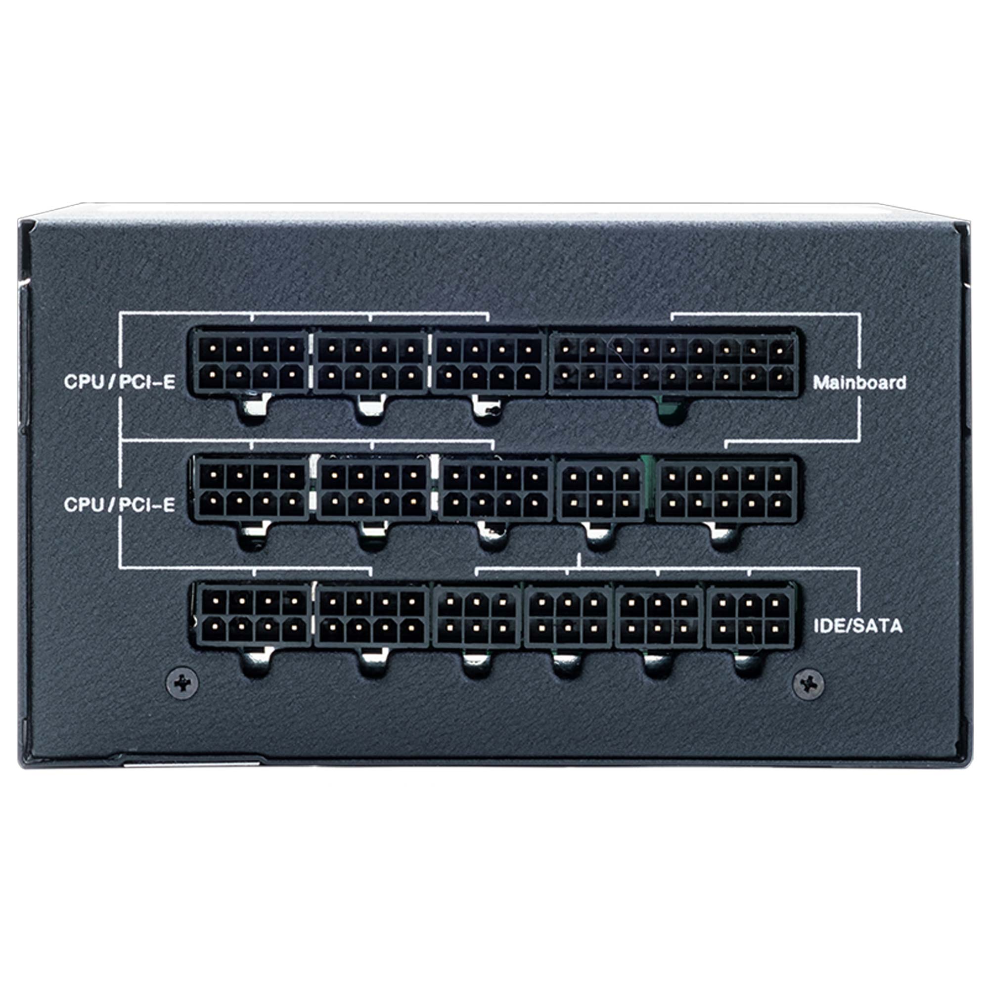 Internamente troviamo un PCB con il meglio della componentistica in commercio ottimizzati nella disposizione, la regolazione ? DC to DC, il PFC attivo e condensatori Giapponesi 105c. Il cablaggio ?free plug? ? completamente modulare con cavi flat.