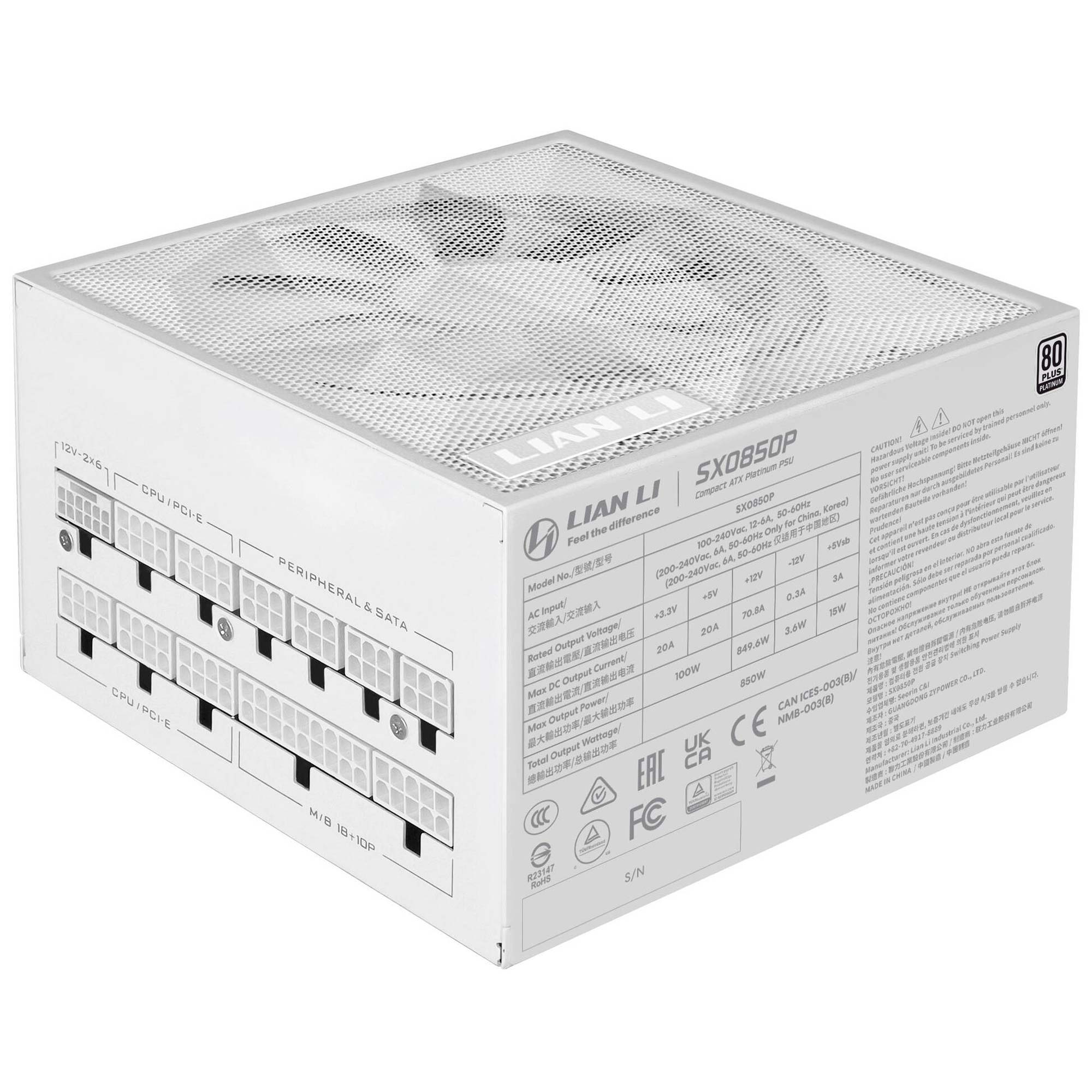 Il Lian Li SX Platinum 850W ? un alimentatore ATX 3.1 ad alta efficienza pensato per build gaming e workstation moderne. Con certificazione 80 PLUS Platinum, potenza stabile da 850 W e connettore PCIe 5.1 12V-2?6, garantisce affidabilit? e compatibilit? con le GPU di ultima generazione.