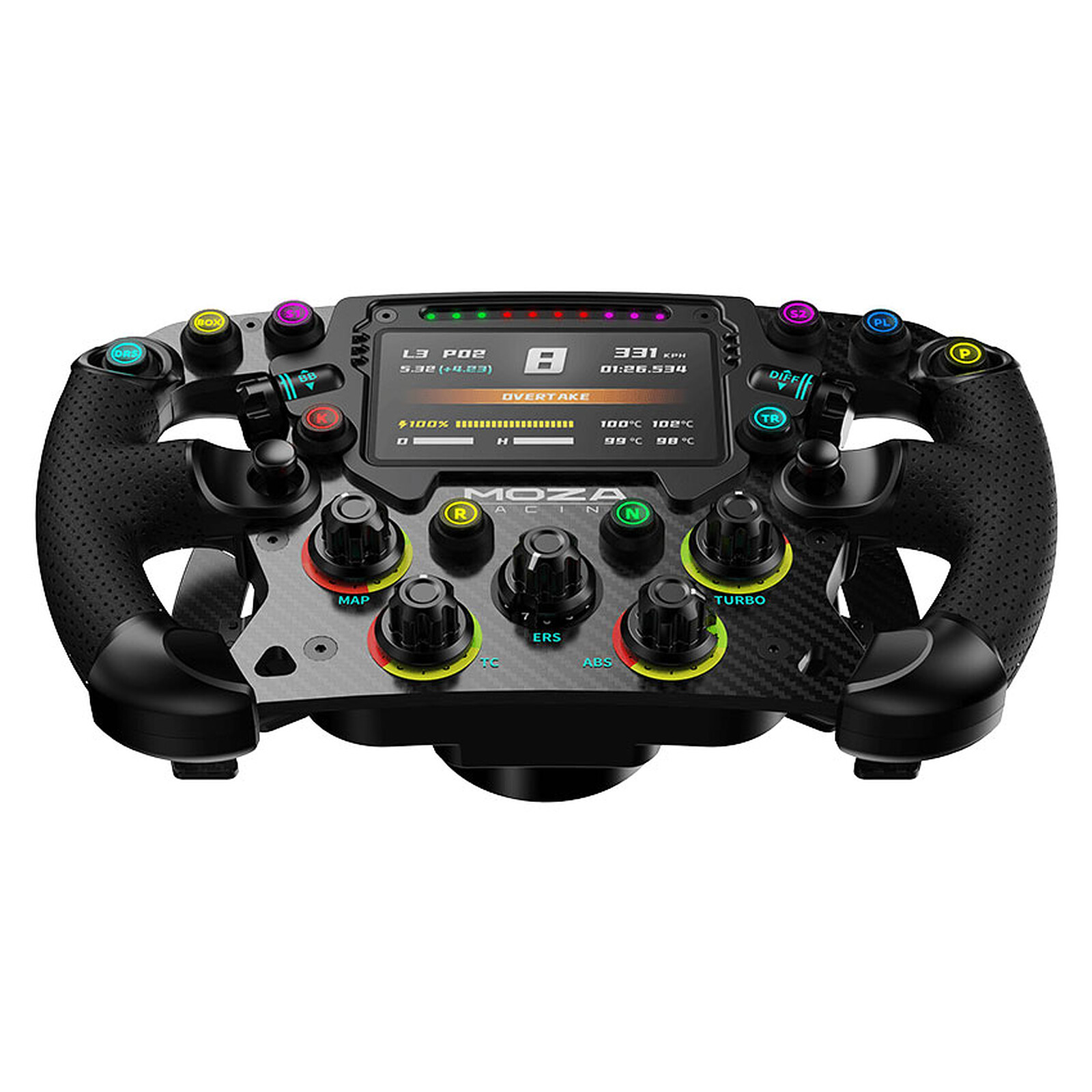 Porta la tua configurazione da corsa al livello successivo con il volante da formula MOZA FSR. La costruzione in alluminio e carbonio consente un piacere di guida duraturo e migliora immensamente la tua configurazione.