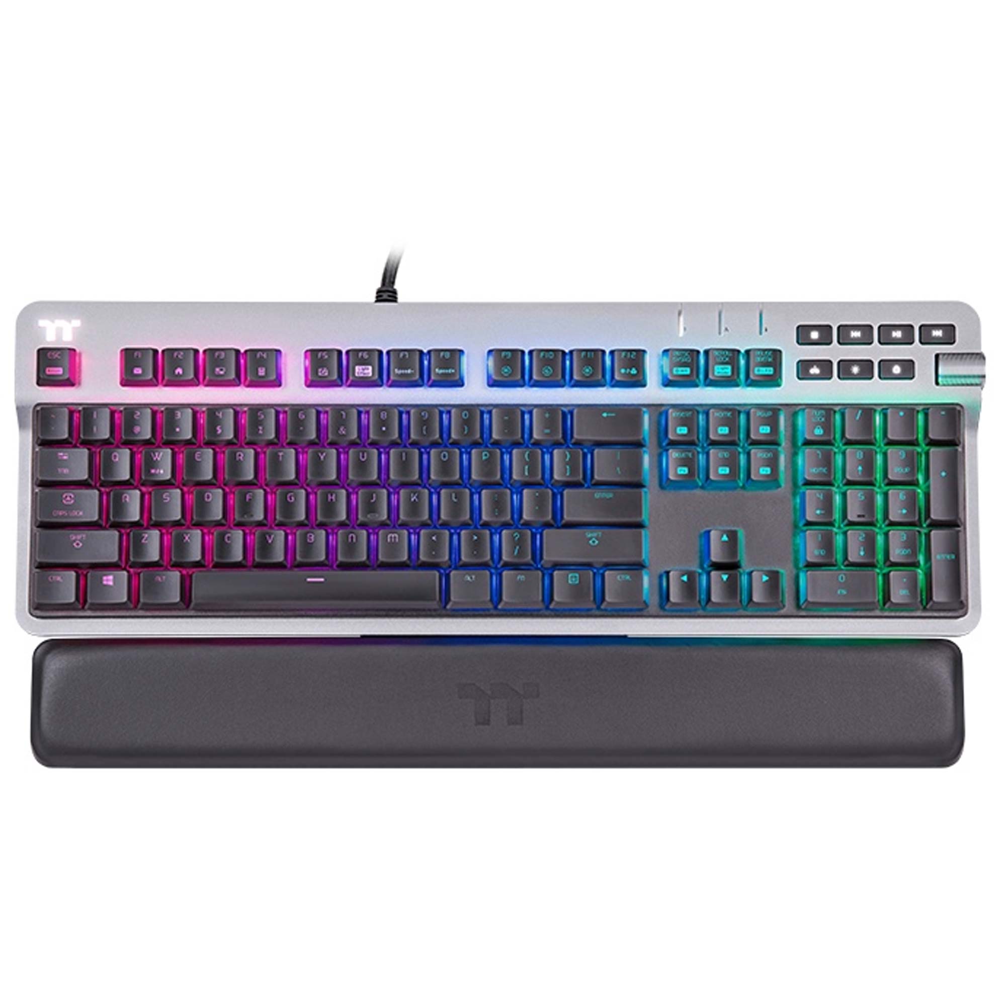 Dispone di illuminazione RGB con 16,8 milioni di colori, profili on‑board, memoria interna da 4 Mbit e compatibilit? con il sistema TT RGB Plus e Razer Chroma. Il wrist‑rest magnetico in similpelle aggiunge comfort nelle lunghe sessioni di gioco.