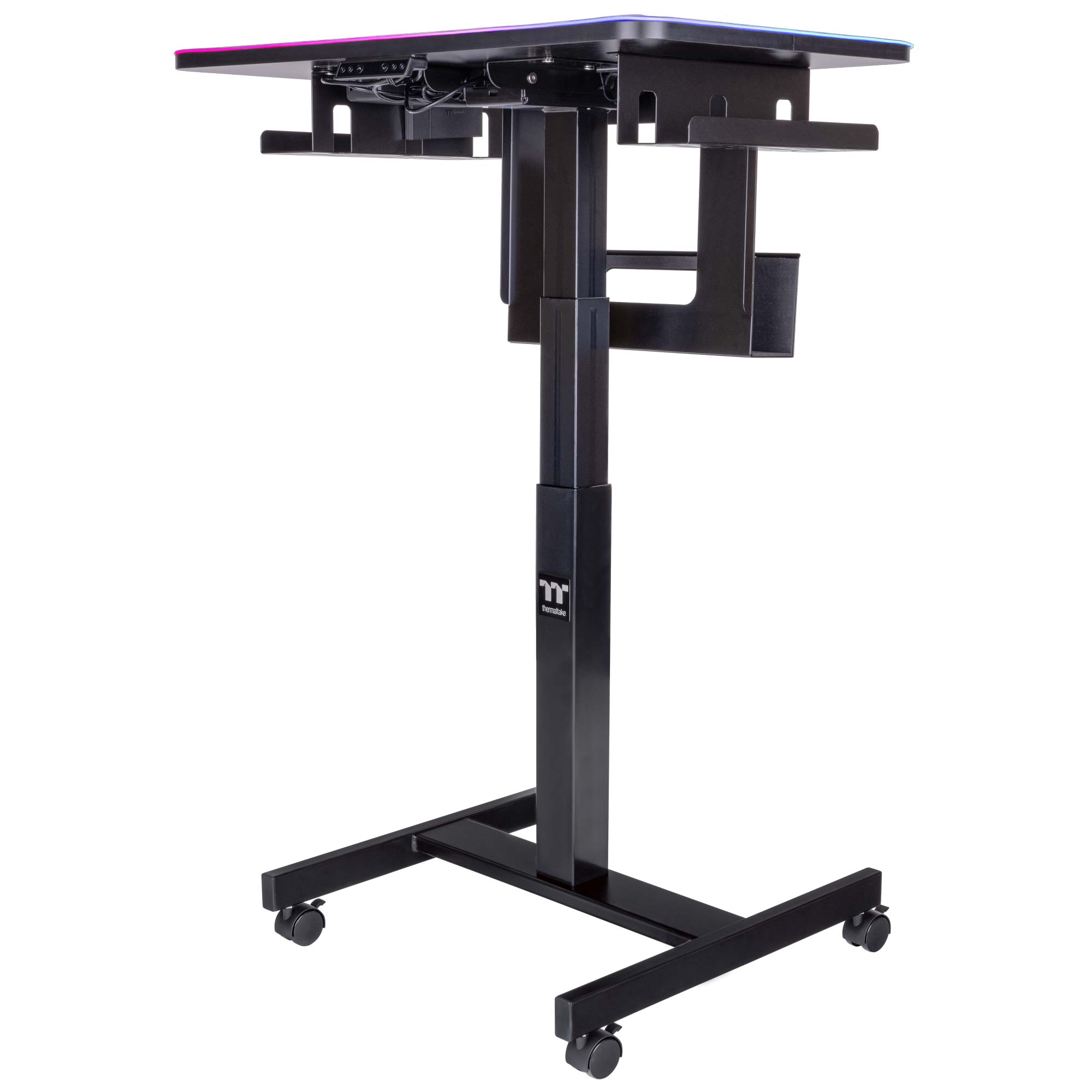 La scrivania CYCLEDESK 100 ? dotata di un tappetino per mouse impermeabile ed in tessuto di alta qualit? rivestito di una striscia RGB. Personalizza, controlla e sincronizza gli effetti di luce tramite l’app mobile da scrivania Thermaltake RGB o il software del motore iTAKE. Fai un ulteriore passo avanti e scegli tra 4 diverse impostazioni di effetti di luce abbinate a 5 livelli individuali di luminosit? e velocit? di illuminazione.