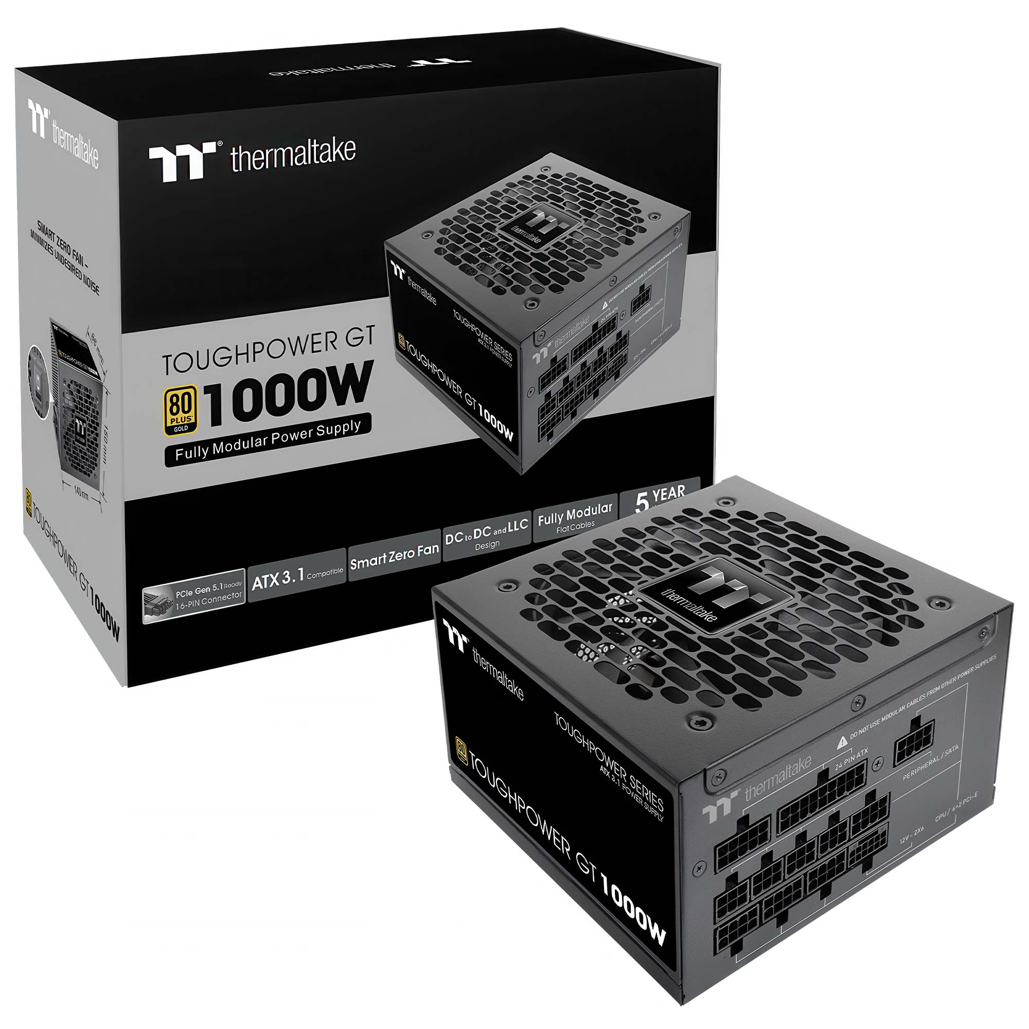 Il Thermaltake Toughpower GT 1000W ATX 3.1 ? un alimentatore completamente modulare, certificato 80 PLUS Gold, pronto per i PC moderni grazie alla compatibilit? con lo standard ATX 3.1 e al connettore PCIe Gen 5 nativo (12V‑2×6).