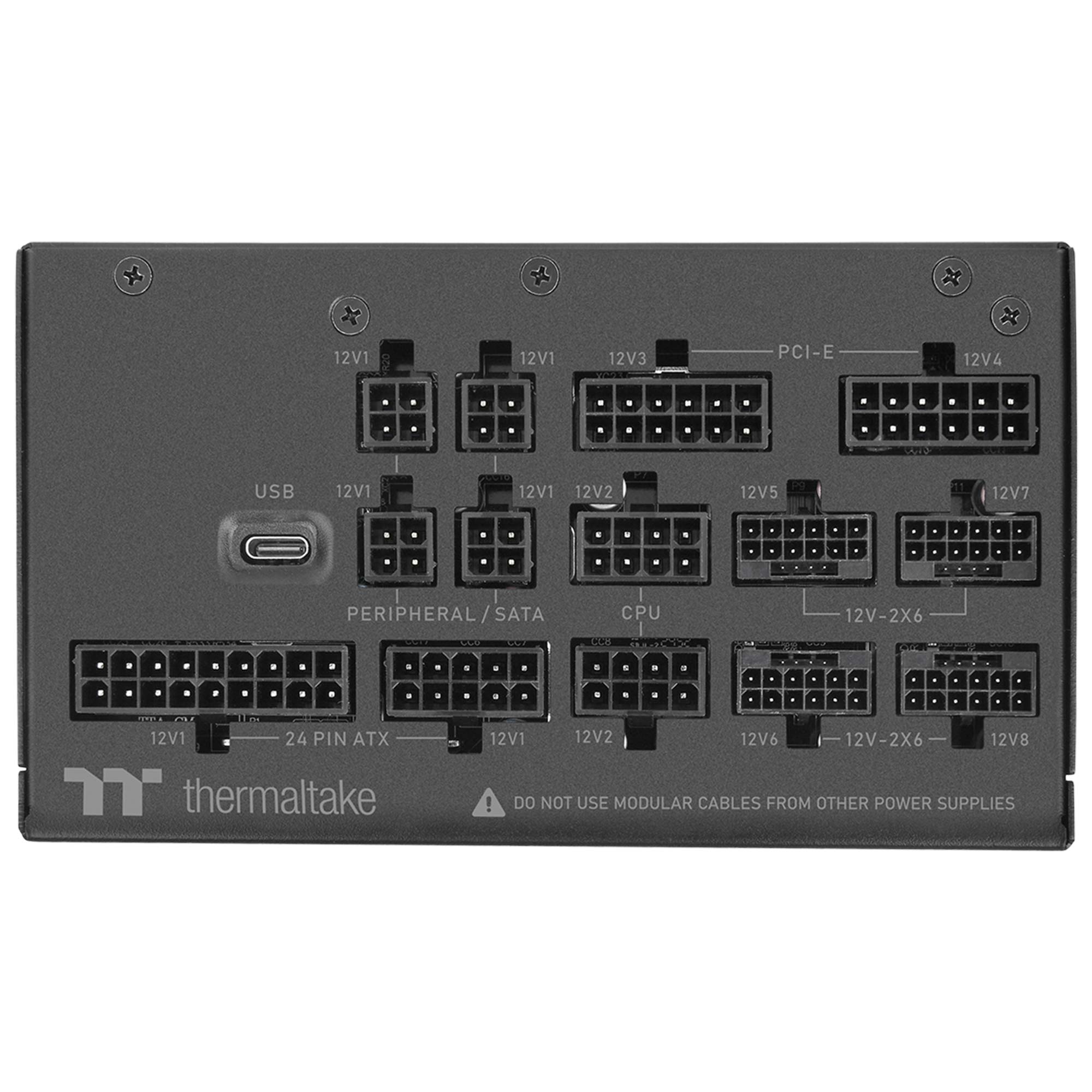 L?alimentatore integra funzionalit? digitali avanzate tramite TT RGB PLUS e DPS G Smart Power Management Cloud, consentendo il monitoraggio in tempo reale di CPU, PCI-E e linea 12V-2?6, oltre alla gestione della modalit? single-rail o multi-rail. La dotazione di quattro connettori PCIe 12+4 pin da 600W lo rende ideale per workstation professionali con pi? GPU PCIe Gen 5.1.