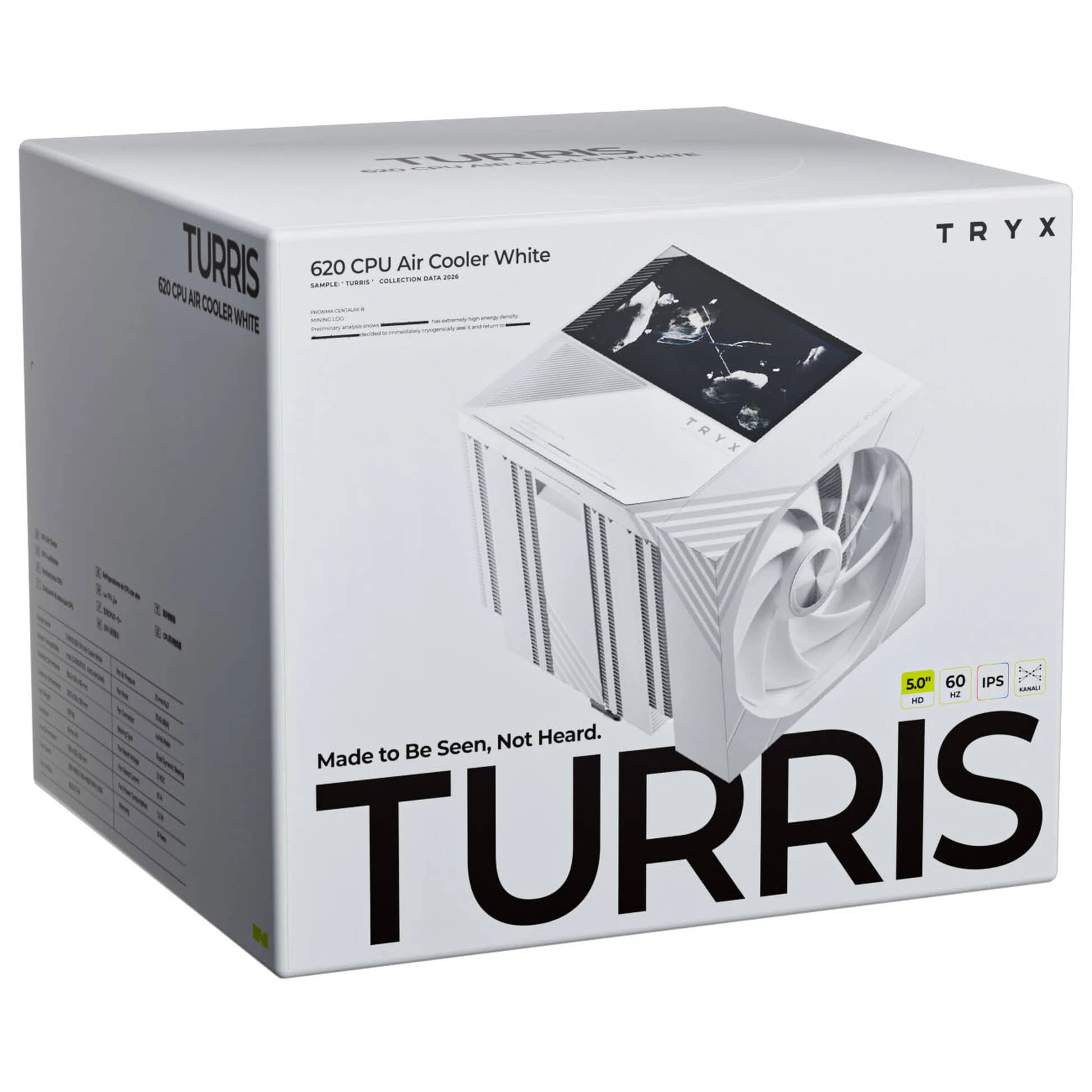 Il TRYX TURRIS T620 è un dissipatore aria dual-tower per CPU progettato per overclocker, gamer e creator che richiedono raffreddamento ad alte prestazioni, silenzio estremo e un elemento visivo interattivo. Con schermo IPS da 5″” Ultra-Wide HD magnetico personalizzabile tramite software KANALI, 6 heatpipe da 6 mm, base rame nichelata micro-convex e ventole ROTA quick-release su rail stabile, gestisce fino a 280 W TDP mantenendo temperature basse e un rumore massimo di soli 32,5 dBA.